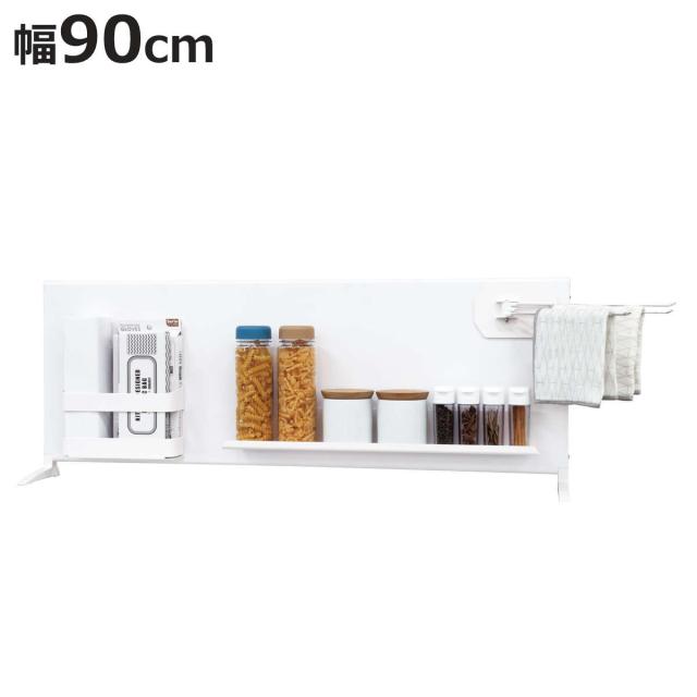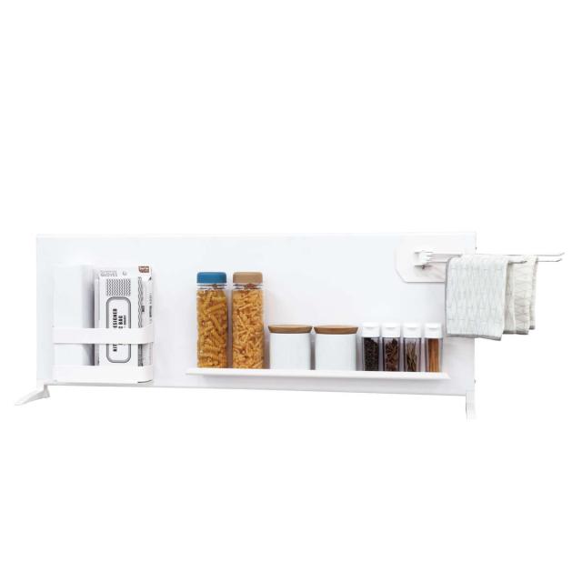 《 LH16292 コンロ収納 デスク収納 小物収納 棚 オフィス 机上 デスク オシャレ おしゃれ シンプル 台所 インテリア カウンター上 ワークトップ 調理台 流し台 調味料 布巾かけ フキン スパイスボトル ラップスタンド ペン立て ツールスタンド 置くだけ 間仕切り メモボード 磁石 便利 おすすめ 背面収納 役立つ 白 ホワイト 90 》