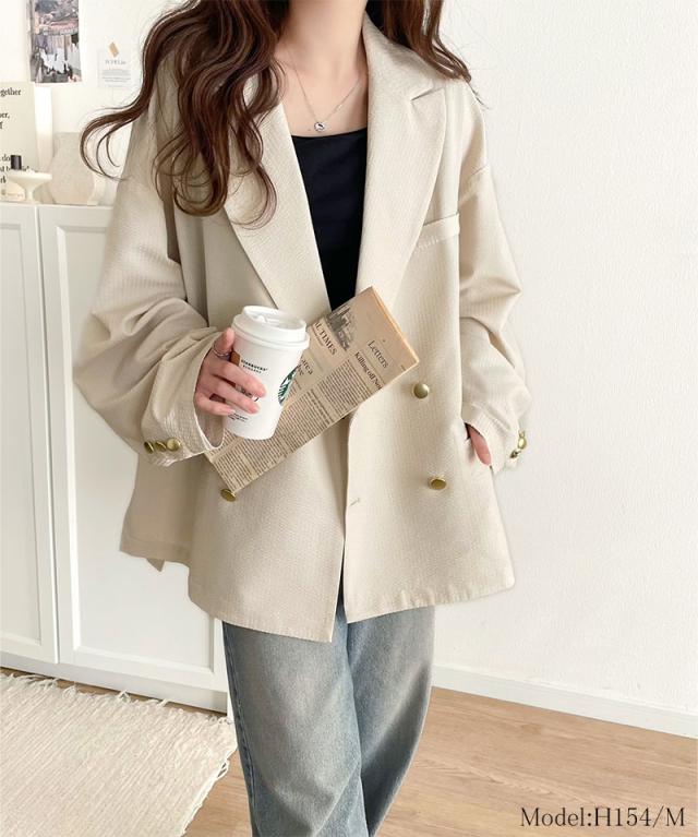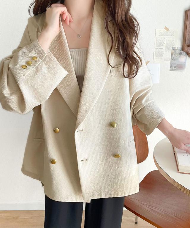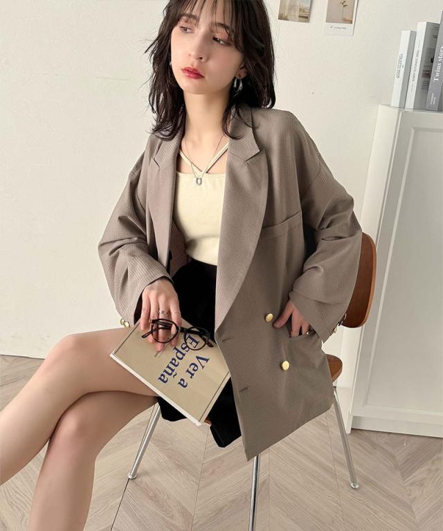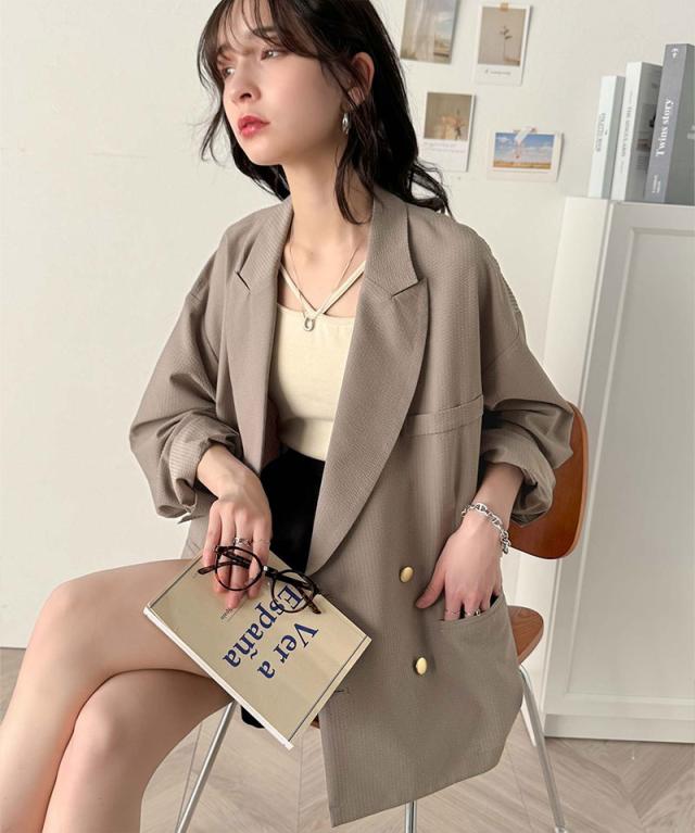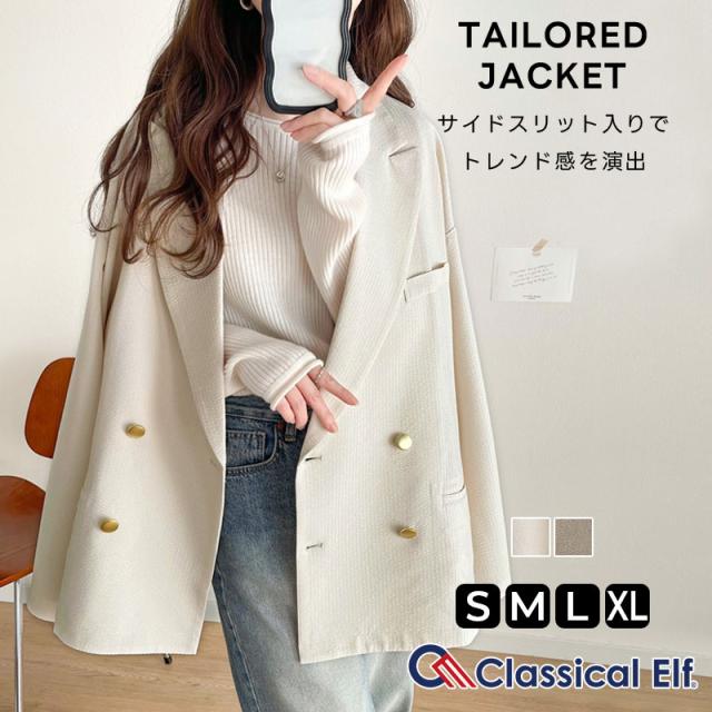 クラシカルエルフ冬新作 アウター ジャケット レディース サッカー 素材 長袖 ダブル ビッグ JK サイド スリット 羽織り 大きいサイズ 2025ss ce1260302