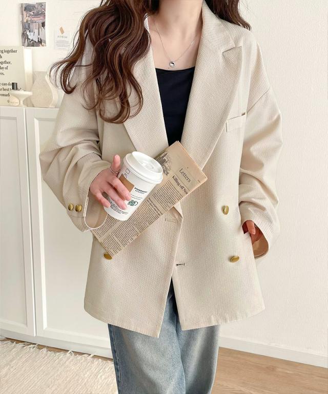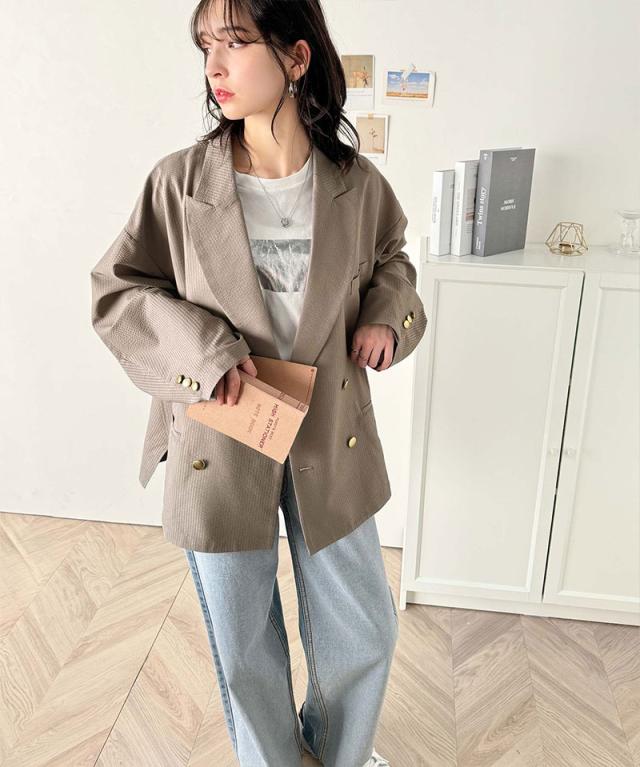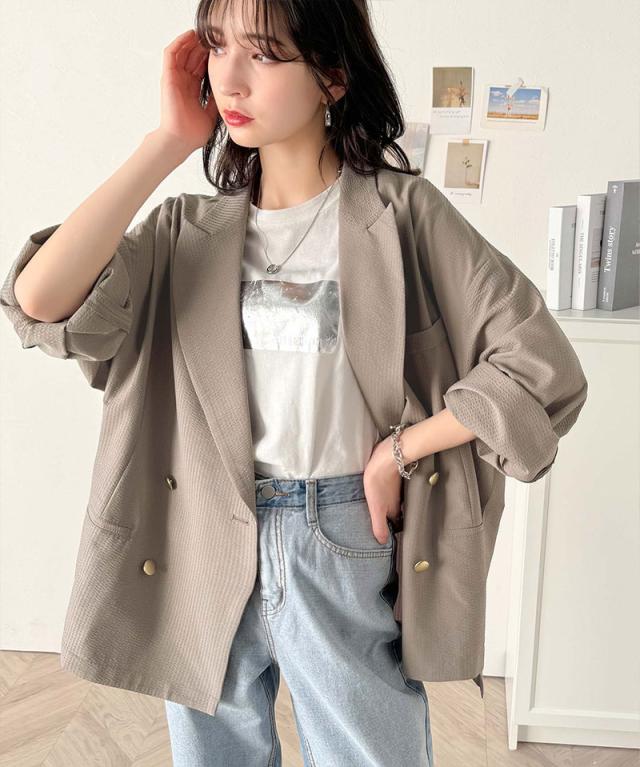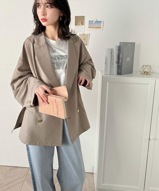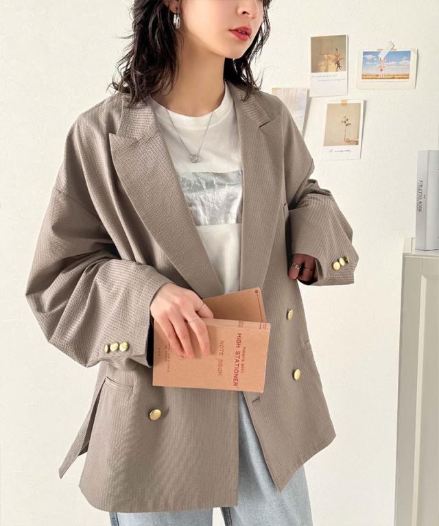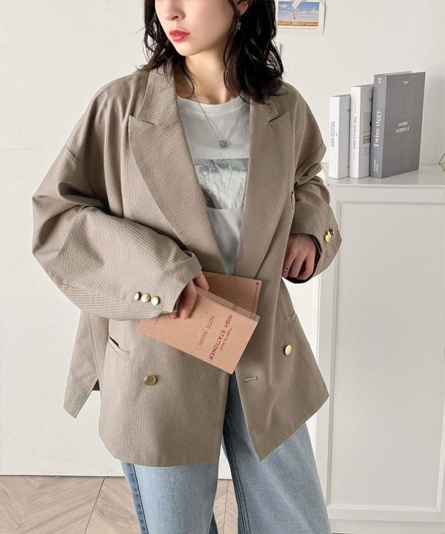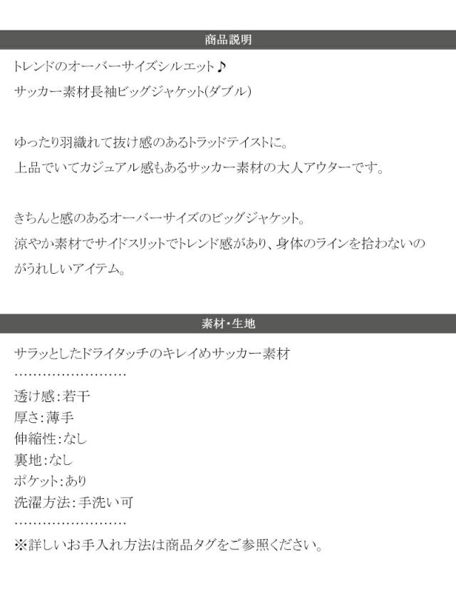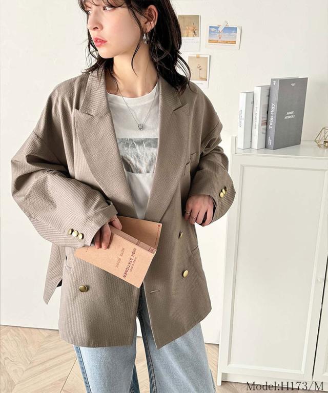 ★トレンドのオーバーサイズシルエット♪サッカー素材長袖ビッグジャケット(ダブル)★