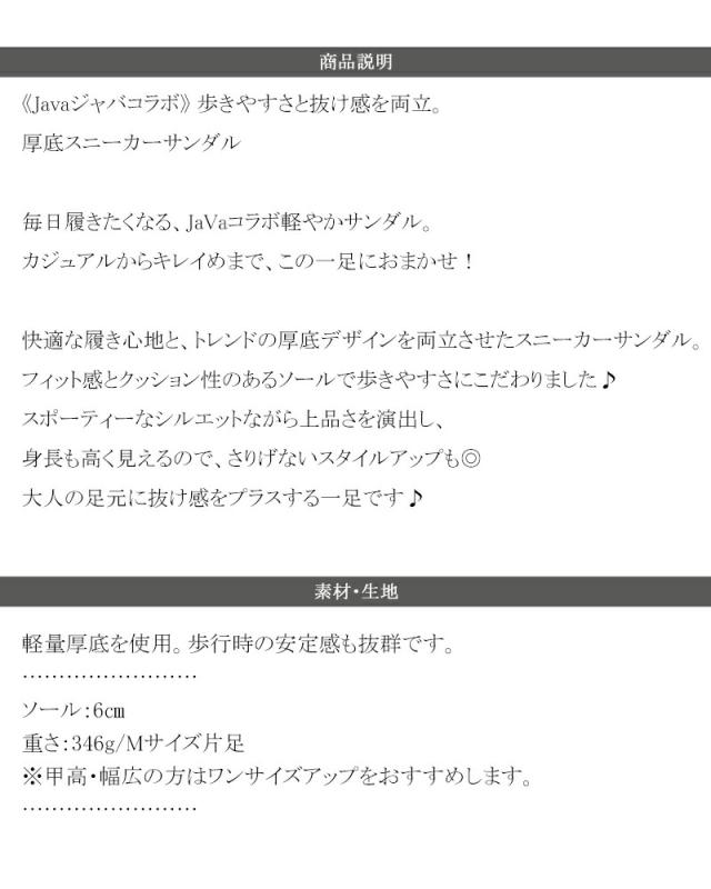 ★《Javaジャバコラボ》 歩きやすさと抜け感を両立。厚底スニーカーサンダル★