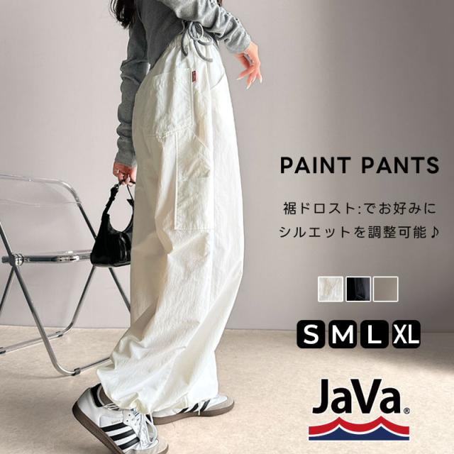 クラシカルエルフ春新作 java ジャバ別注 ボトムス パンツ レディース ワイド シルエット メンズライク 裾 ドロスト ペインターパンツ オーバーサイズ 大きいサイズ 2026ss jv1260347