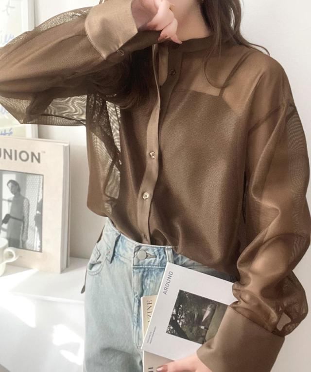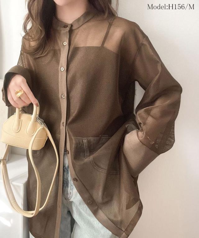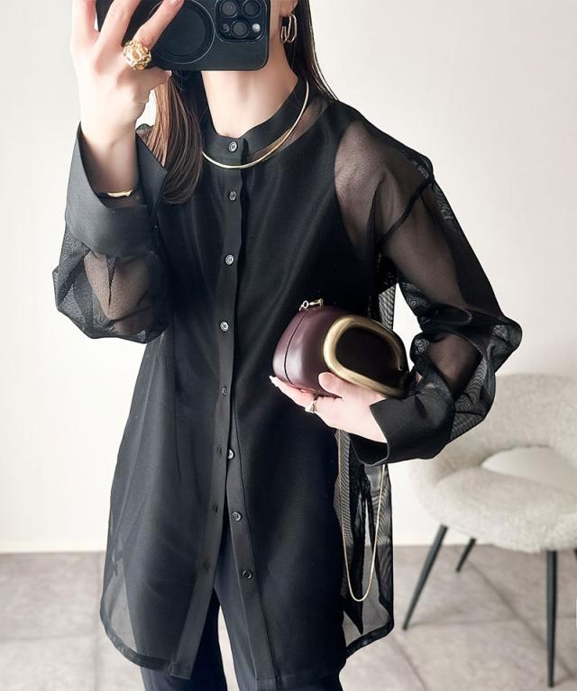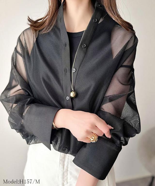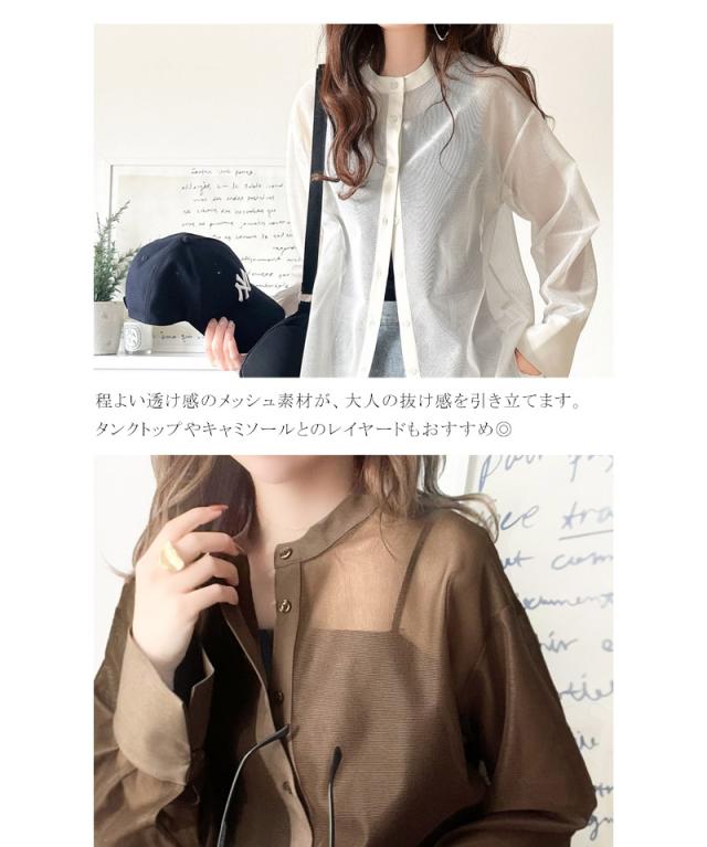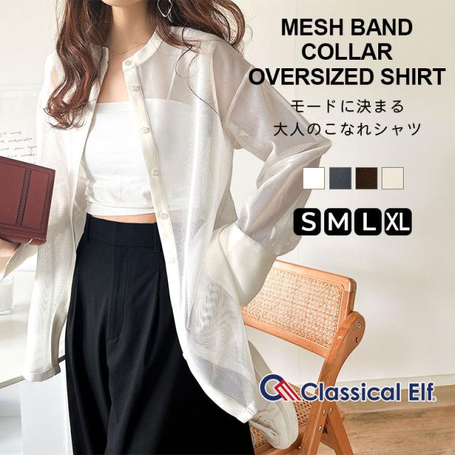 クラシカルエルフ春新作 トップス ブラウス レディース シャツ メッシュ モード バンドカラー 抜け感 こなれ感 綺麗め メッシュ 上品 軽やかな着心地 大きいサイズ 2026ss ce1240071