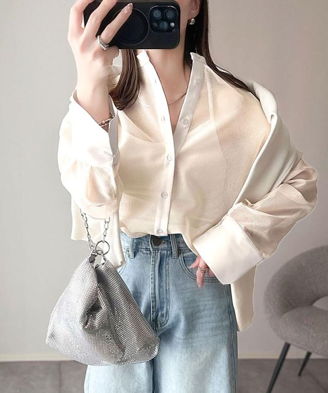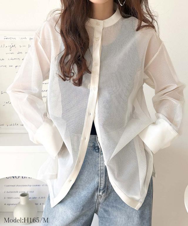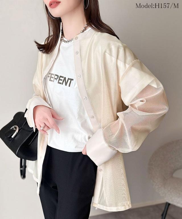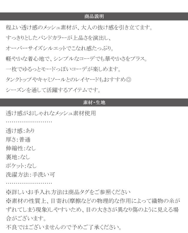 ★大人の抜け感。メッシュバンドカラーオーバーサイズシャツ(長袖)★
