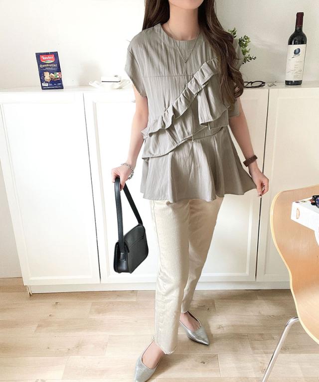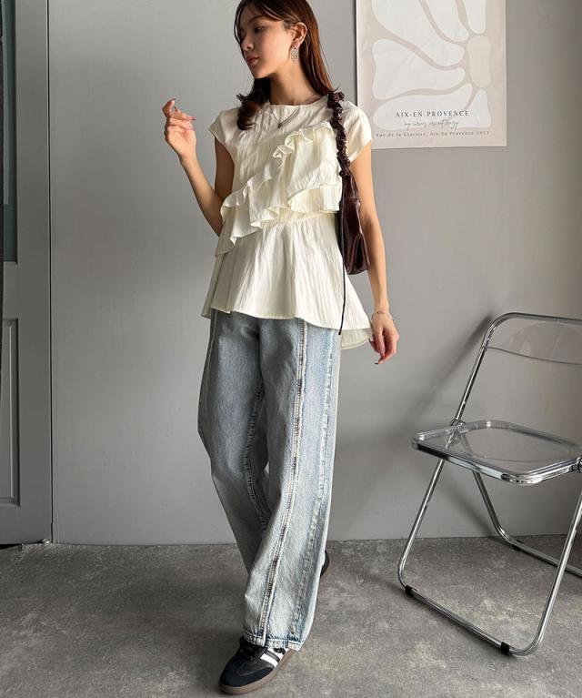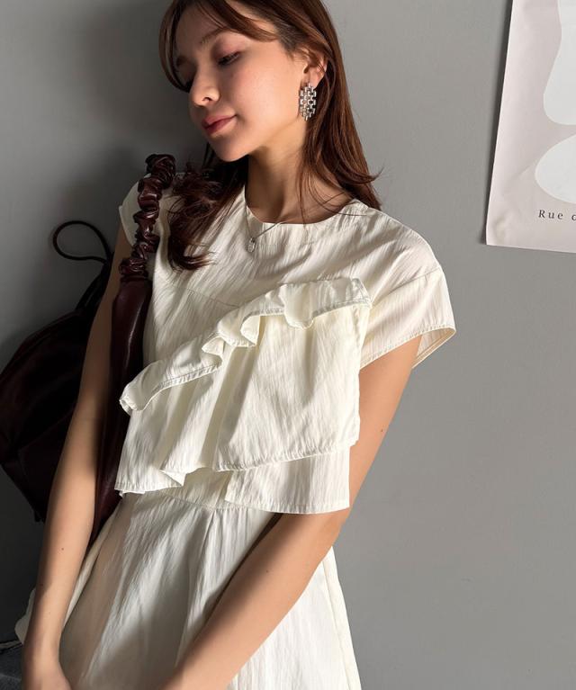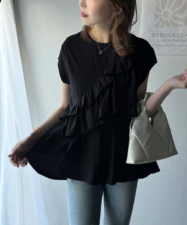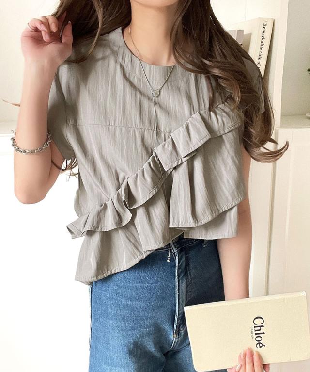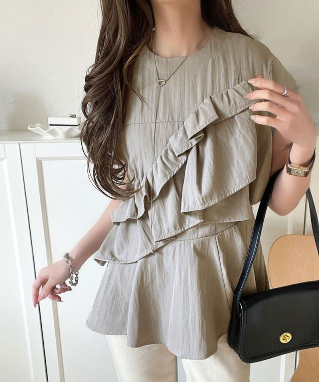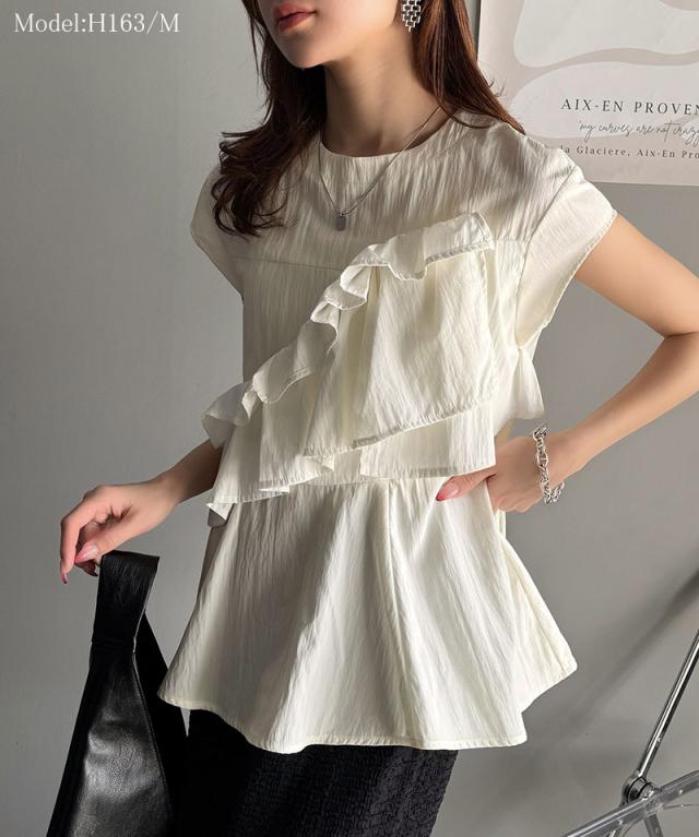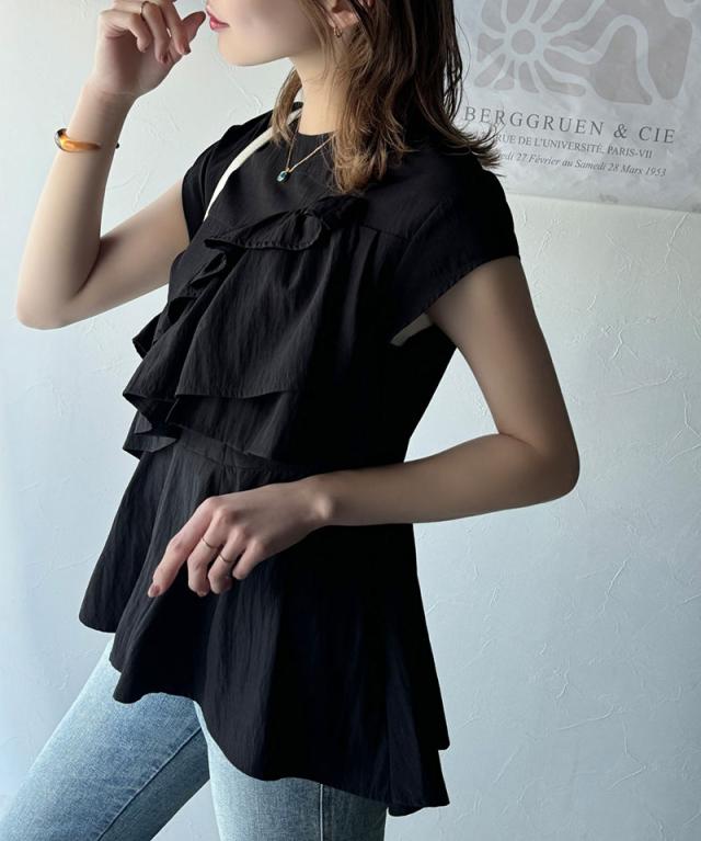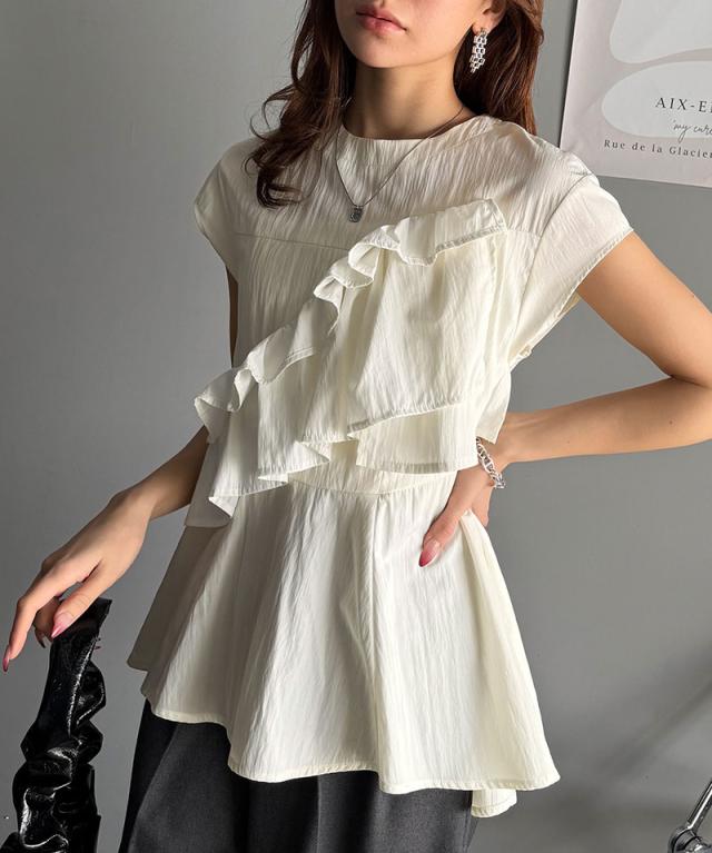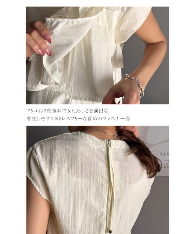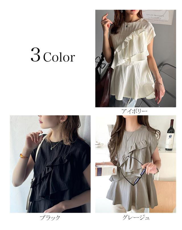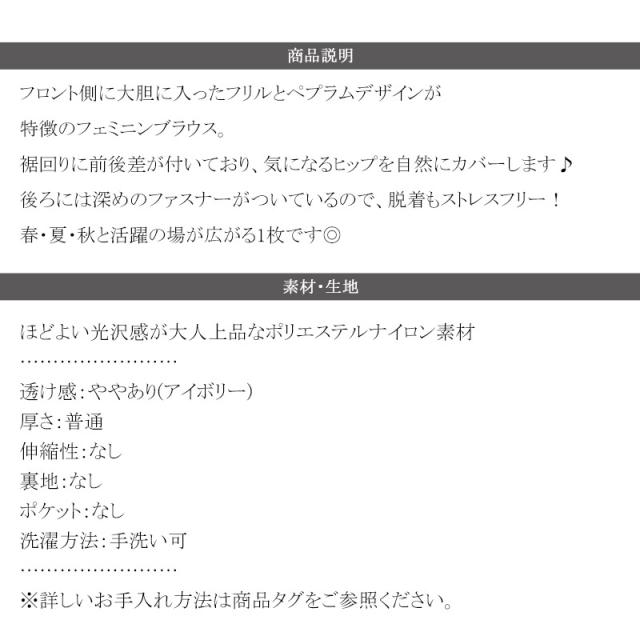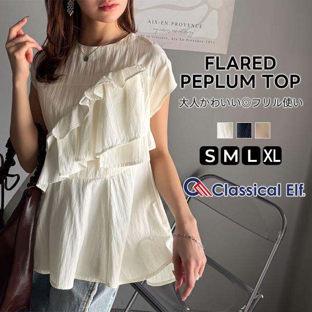 クラシカルエルフ春新作 トップス ブラウス レディース シャツ フリル フレアペプラム かわいい 大きめフリル サラリ 光沢素材 お洒落 フェミニン 大きいサイズ 2026ss ce1240078