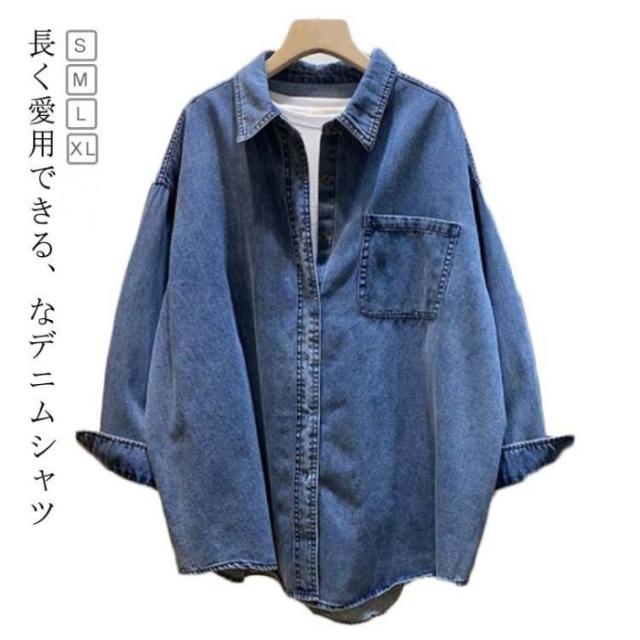 デニムシャツ レディース 長袖 トップス デニム ジャケット 羽織 カジュアル ゆったり おしゃれ 体型カバー 無地 新作