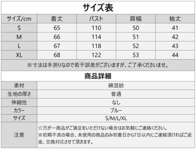 XL:着丈68 バスト122 肩幅53 袖丈44