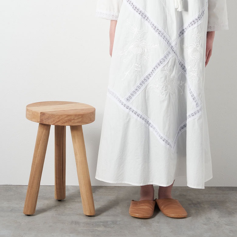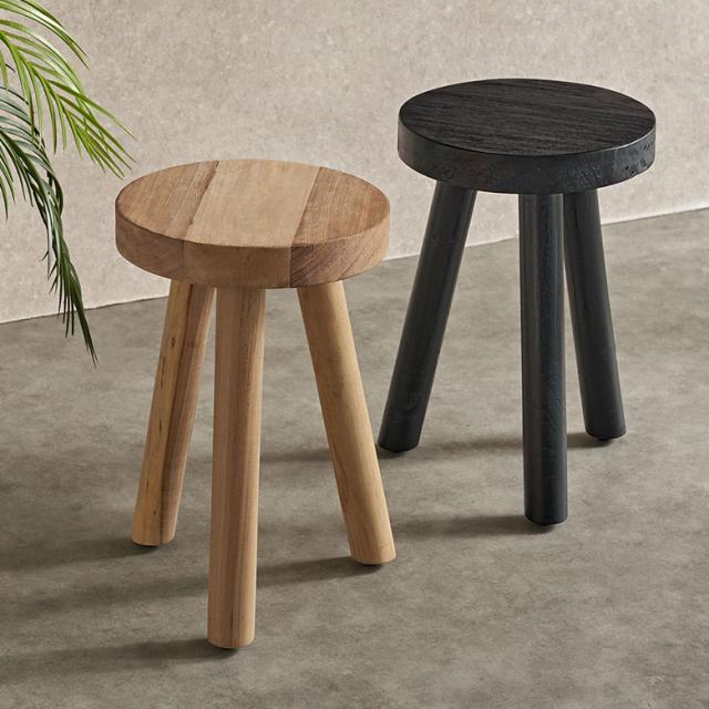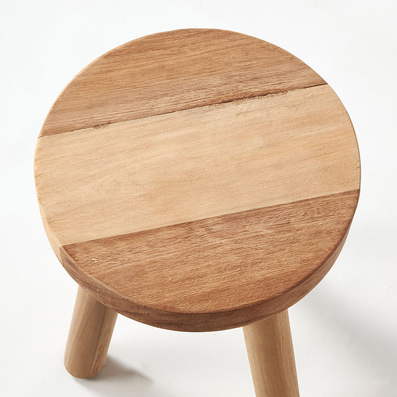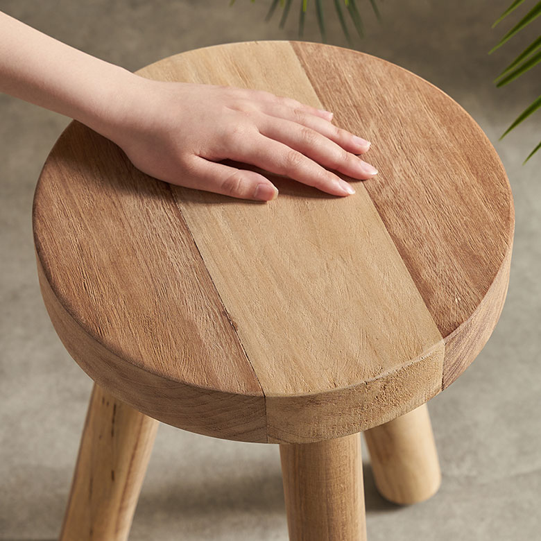 キッチンや洗面所、玄関の腰掛けベンチとしても使いやすいコンパクトサイズ。優しい雰囲気の丸い座面、すっきりとした三本脚のシンプルデザインのスツール。高さを出したい観葉植物の花台や