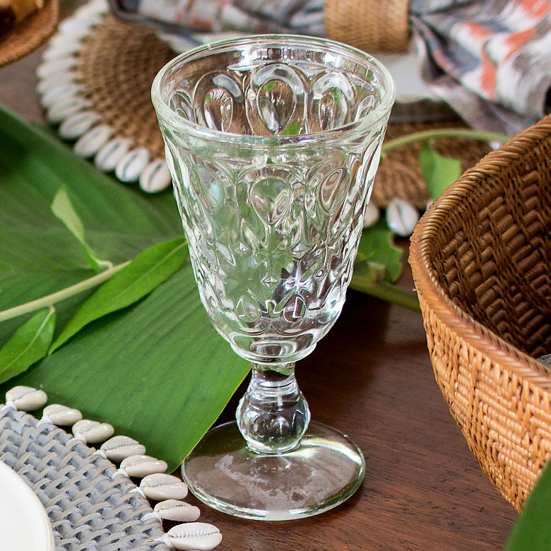 アカシアやチークなど、いろいろな天然木の古材を再利用して作られたラウンド型の