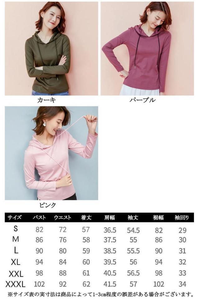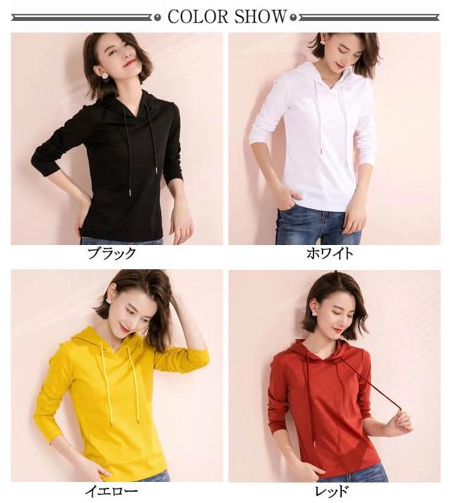 レディース シンプル tシャツ パーカー 長袖 薄手 春パーカー プルオーバー ニットソー フード付きtシャツ フード付き 春 無地 大きサイズ カジュアル 夏 送料無料