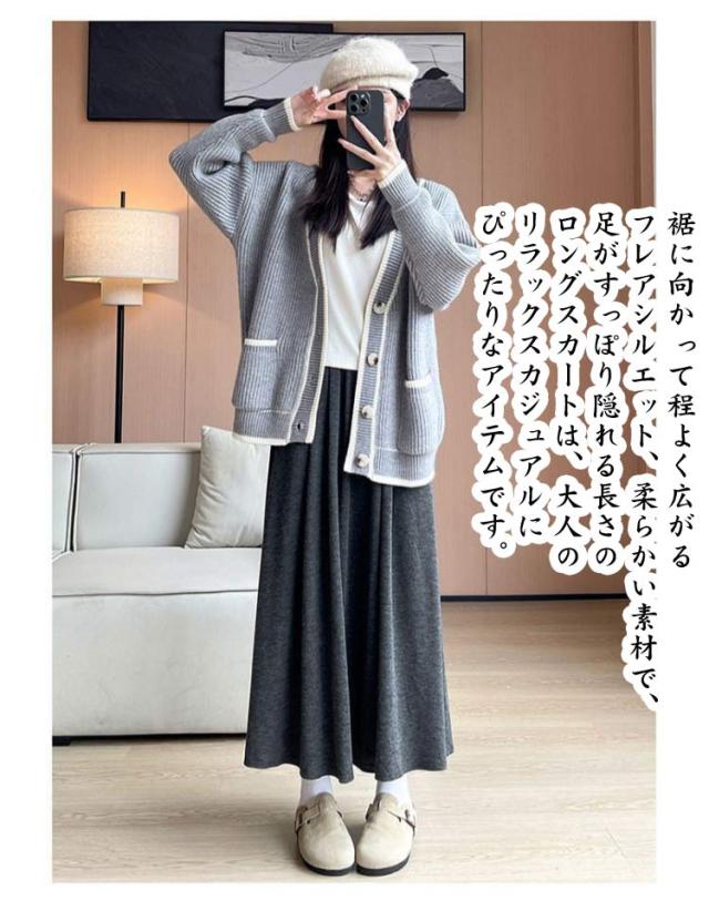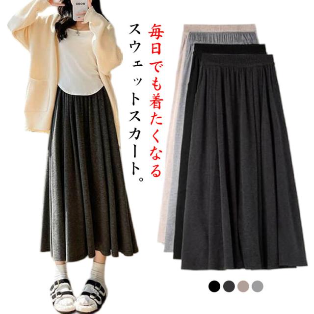 スカート スウェット Aライン ロングスカート マキシ丈 スカート スエット ポケット付き ウェストゴム マキシスカート スウェットスカート 無地 レディース きれいめ 大きいサイズ 着痩せ 柔らかい 春服 春物 お洒落 30代 40代 50代 送料無料