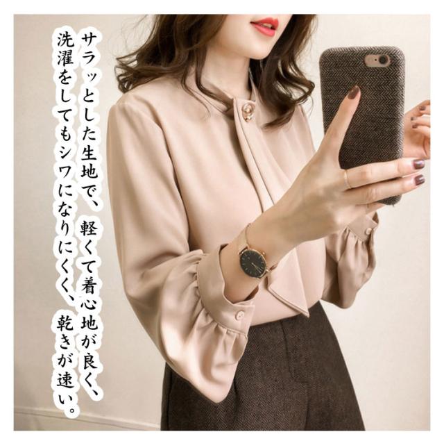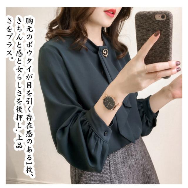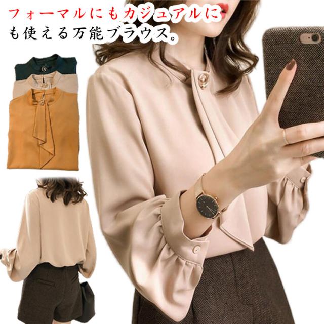 ブラウス ボウタイブラウス リボンブラウス フォーマルブラウス プルオーバー シャツ 長袖 体型カバー オシャレ 華やか 上品 無地 通勤 ビジネス バルーン袖 リボンタイ シャツブラウス 落ち感 とろみ 春夏 カジュアルシャツ 送料無料