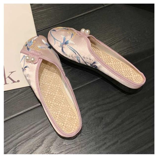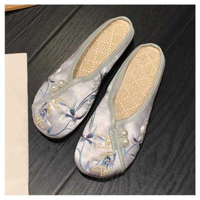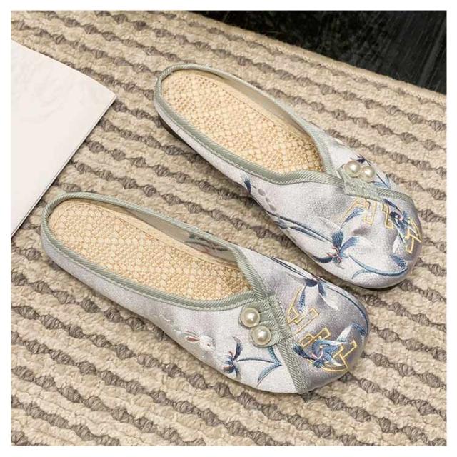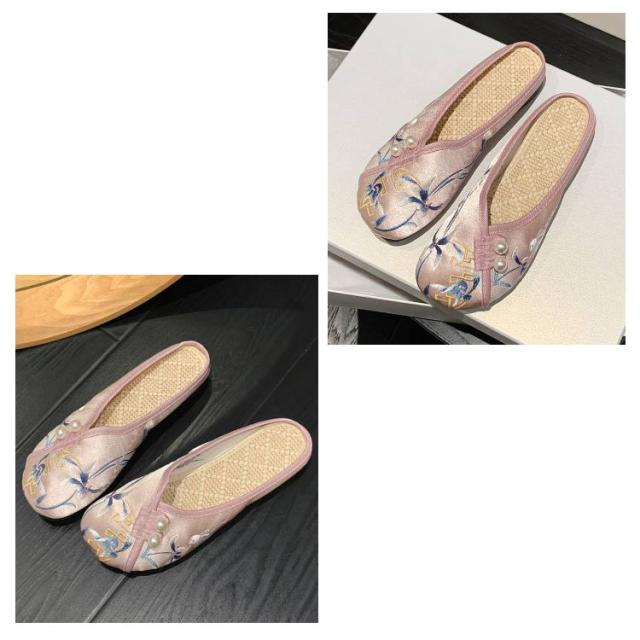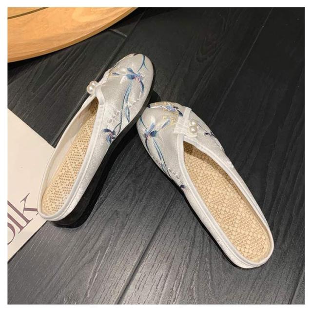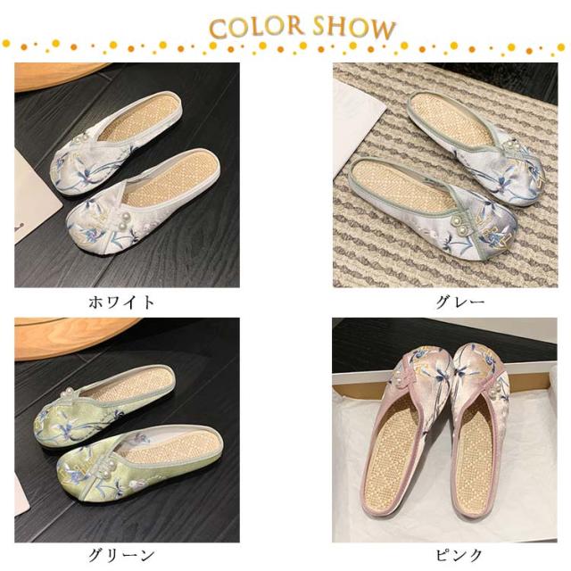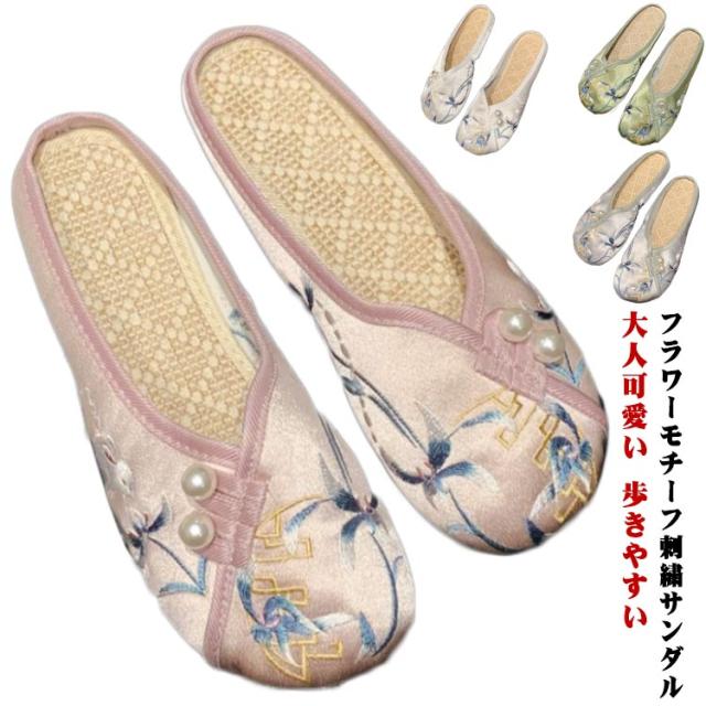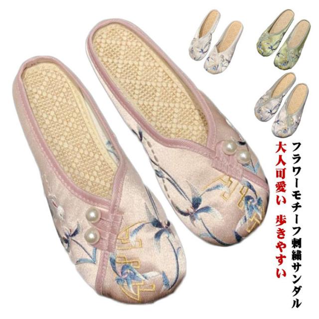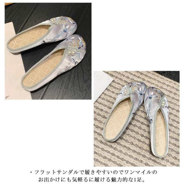 サンダル ミュール レディース 刺繍 サテン ぺたんこ スリッパ 軽い フラットソール 軽量 刺しゅう フラットミュール エスニック 歩きやすい 旅行 リゾート 大人可愛い かわいい 夏