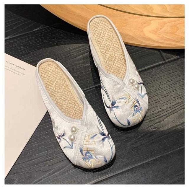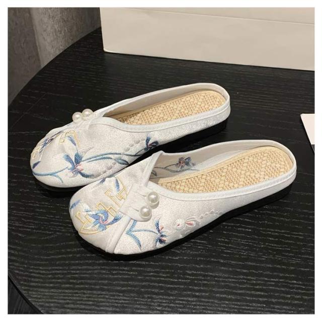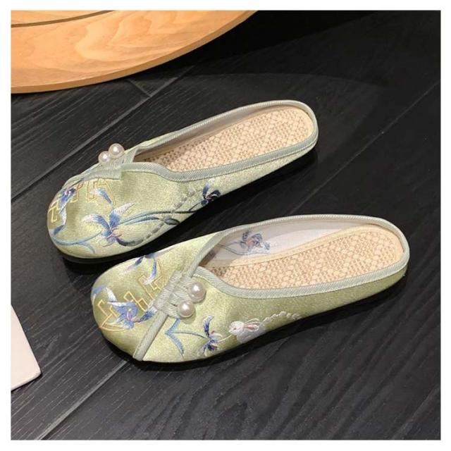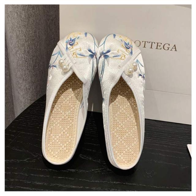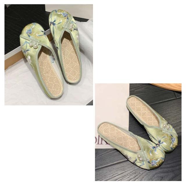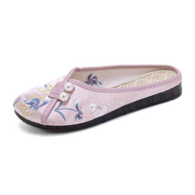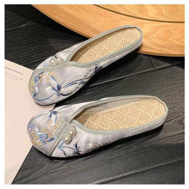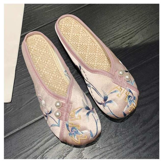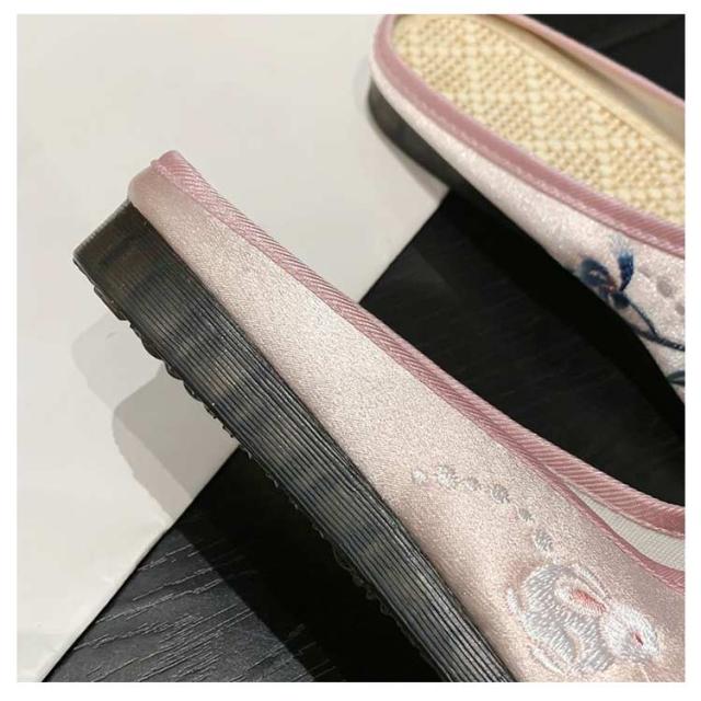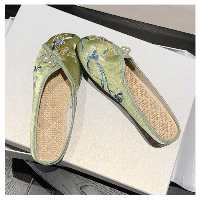 サンダル ミュール レディース 刺繍 サテン ぺたんこ スリッパ 軽い フラットソール 軽量 刺しゅう フラットミュール エスニック 歩きやすい 旅行 リゾート 大人可愛い かわいい 夏