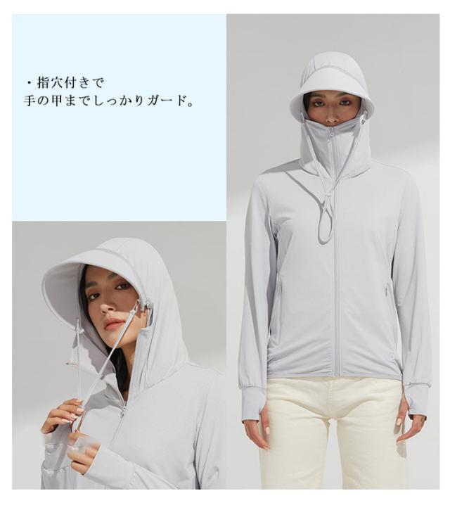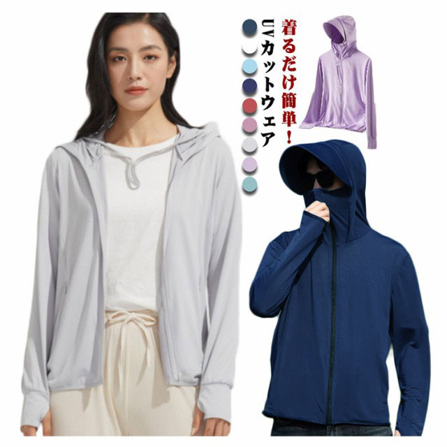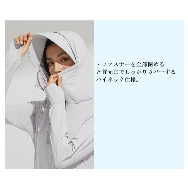 UVパーカー ラッシュガード 接触冷感 薄手 日焼け止め 長袖 ジップアップ フード付き レディース メンズ 指穴 スポーツ ジム ヨガ プール 海 海水浴