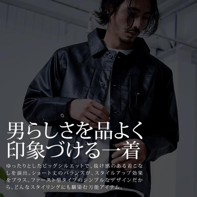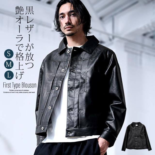 ブルゾン メンズ レザージャケット 革ジャン PUレザー フェイクレザー 合成皮革 合皮 1STタイプ 1ST型 ファーストタイプ ファースト型 ジャケット ビッグシルエット オーバーサイズ ゆったり 大きいサイズ ブラック 黒 S M L シンプル ユニセックス 男 男性 服 春服 秋服 冬服 大人 カジュアル きれいめ ストリート ストリート系 ストリートファッション 韓国 韓国系 韓国ファッション 下北沢 下北系 古着 古着系 90s 90年代 2000年代 Y2K 父の日 父の日ギフト 父の日プレゼント 20代 30代 40代 メンズファッション 東京 プレゼント 誕生日 記念日 贈り物 ギフト ライダースジャケット バイカージャケット フェイクレザーブルゾン オーバーサイズアウター ドロップショルダージャケット ビッグシルエットジャケット配送について