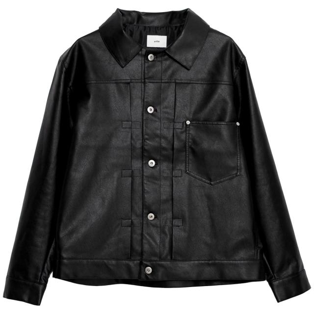 ベジタブル加工を施したPUレザー素材を使用した、ショート丈のブルゾン。