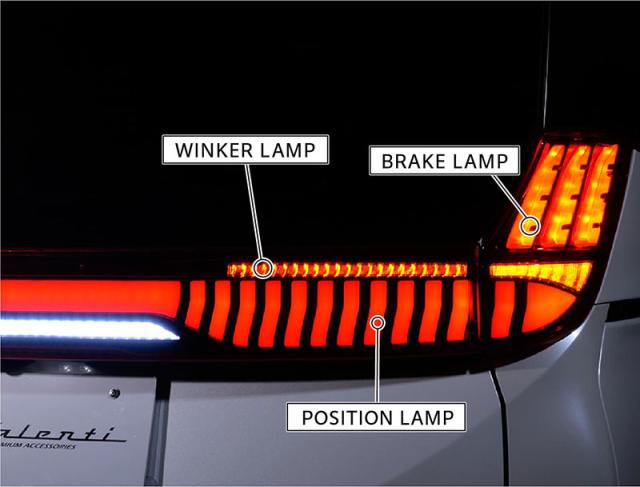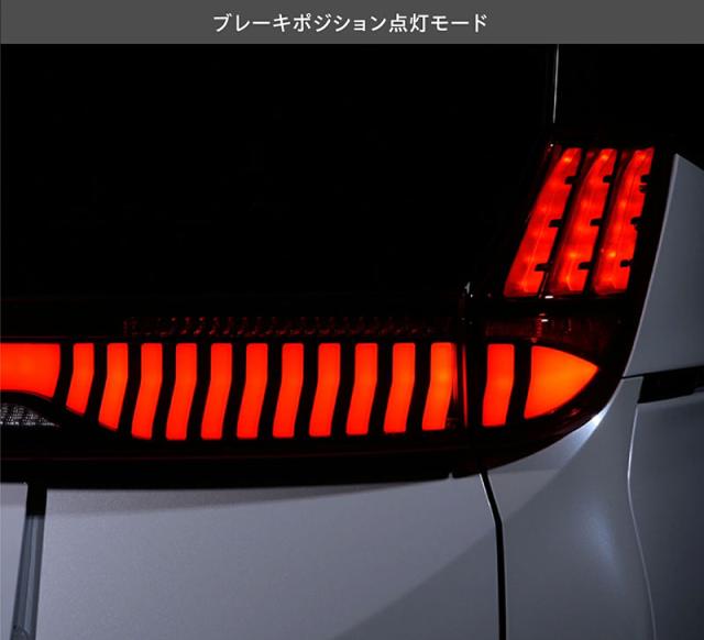 適合車種はトヨタ90系ノア/ヴォクシーで、新デザインのテールランプにオープニング&エンディングアクションを採用しました。