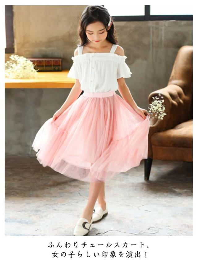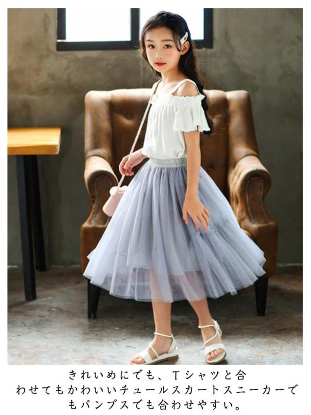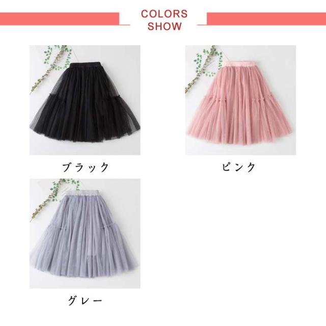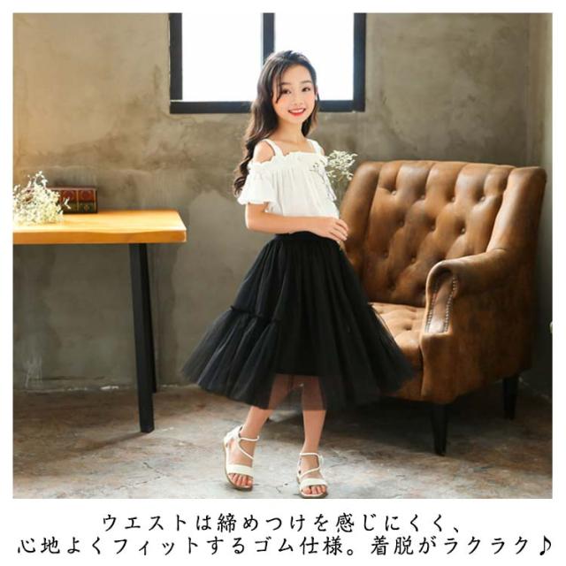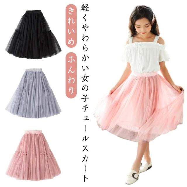 チュールスカート キッズ 女の子 スカート チュール スカート フレアスカート ウエストゴム ミディアム丈スカート チュチュスカート きれいめ 女児 チュチュ 卒園式 卒業式 子供 レース 可愛い 大きいサイズ 無地 シンプル 春夏 ふんわり 送料無料
