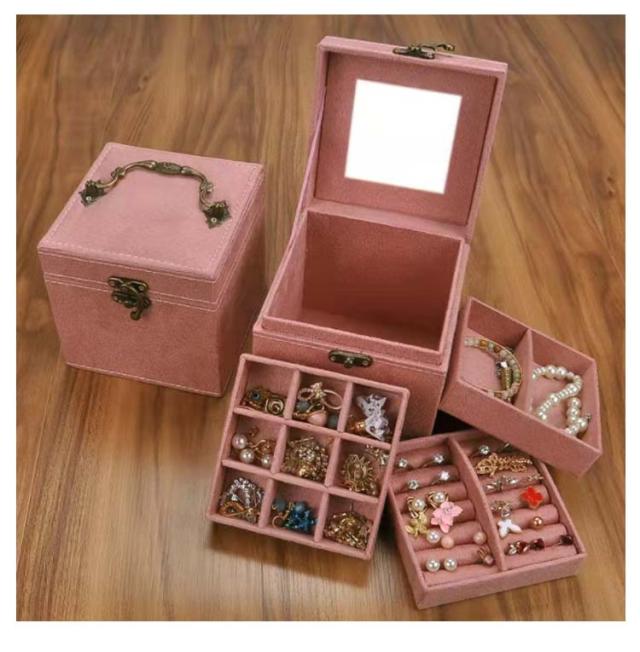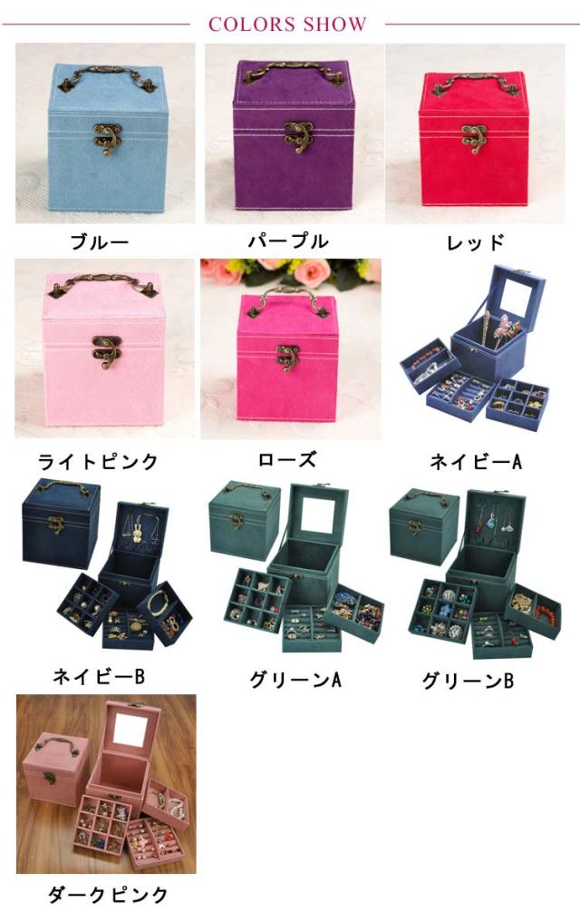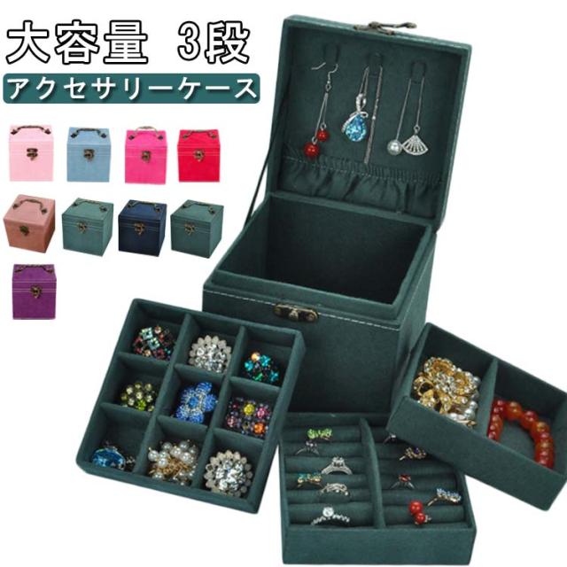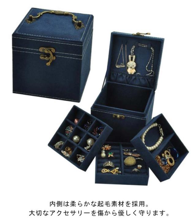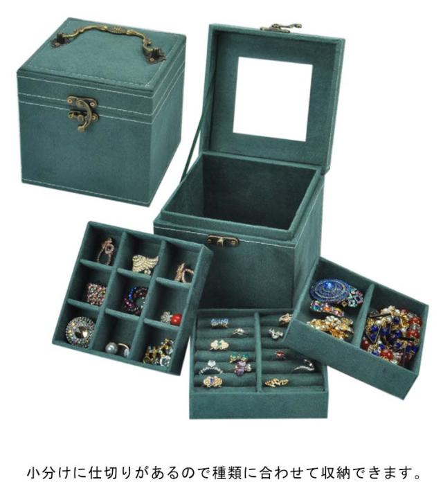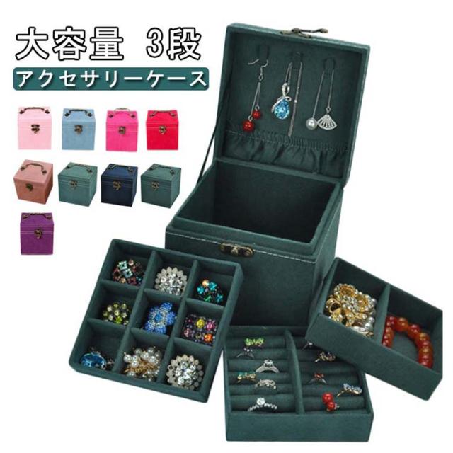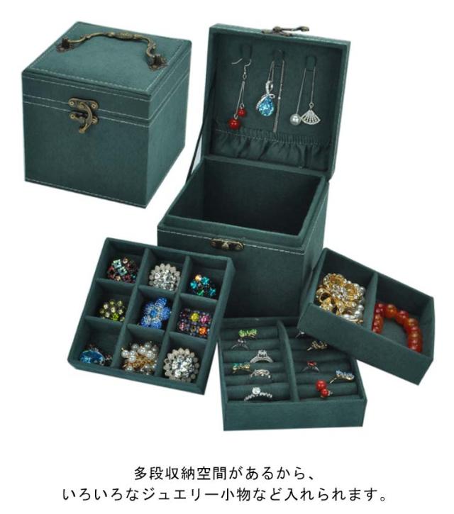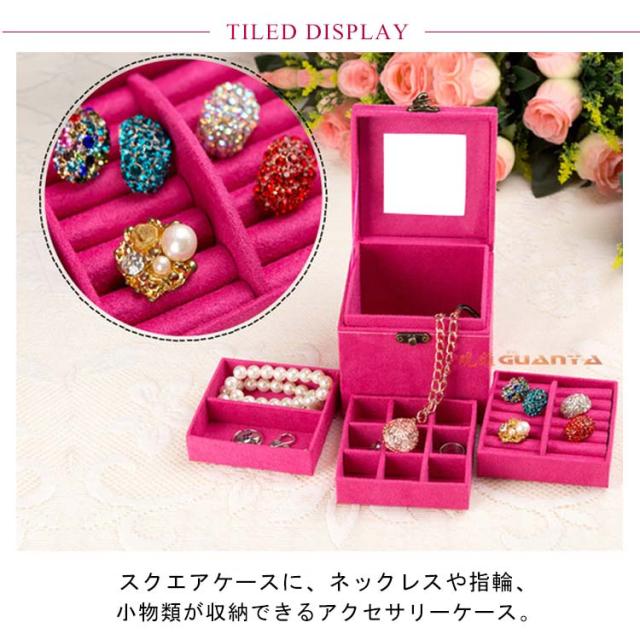 ジュエス アクセサリートレー 3段 スクエア ジュエリー収納ボックス ジュエリーケース 宝石箱 小物入れ 指輪 ピアス 収納 大容量 可愛い アンティーク 持ち手付き 送料無料 スクエアボックス マット スエード