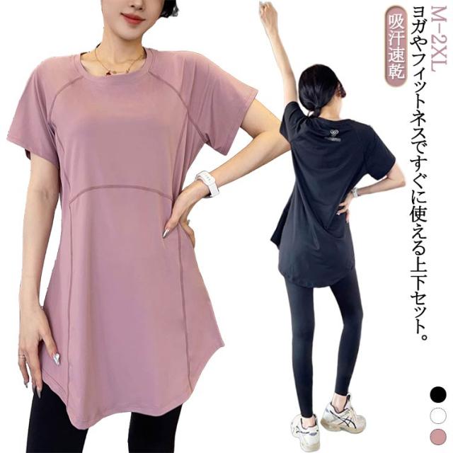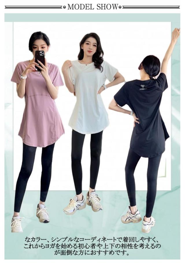 ヨガウェア トップス 半袖 ロング丈 長め 体カバー ヨガウェア 上下セット 体型カバー セットアップ スポーツウェア レディース トップス ボトム おしゃれ チュニック ヨガウエア おうちヨガ フィットネスウェア ピラティスウェア 半袖 ヨガ ピラティス 送料無料