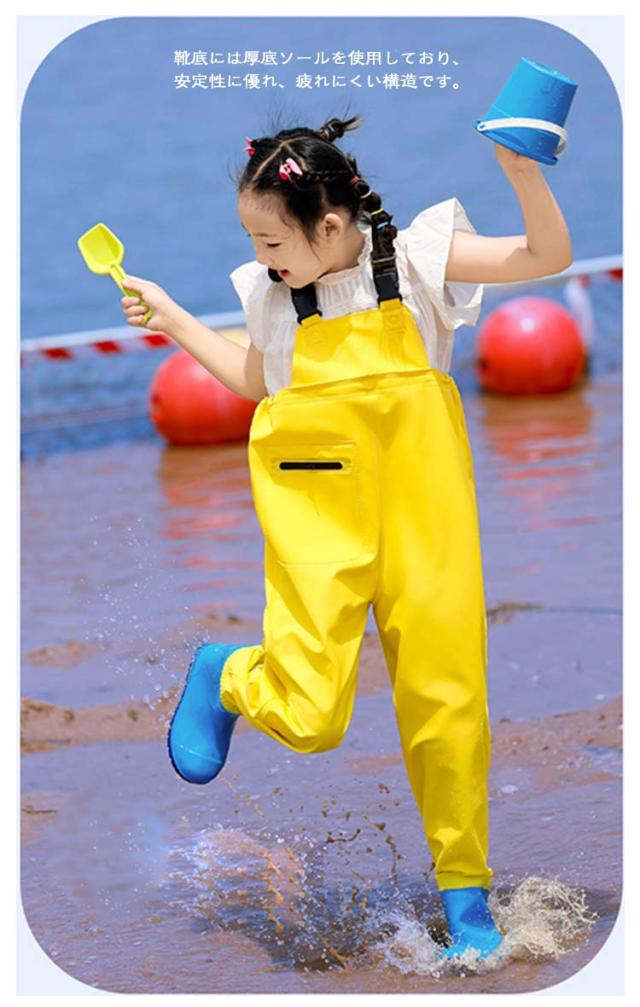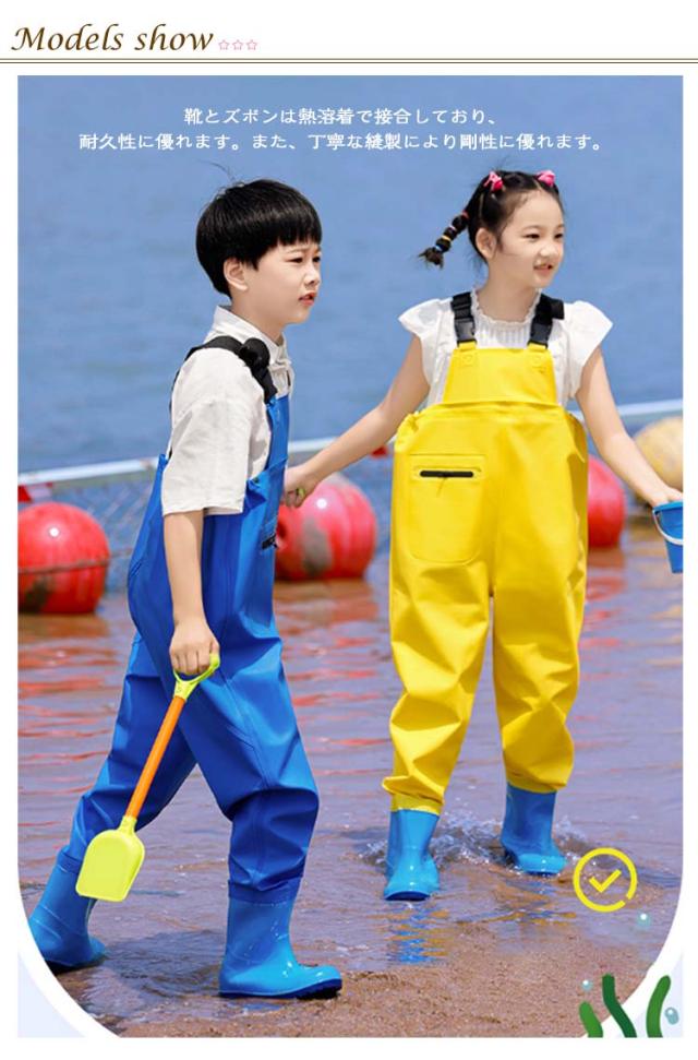 | 水遊び着用かわいいキッズ用ウェーダーです。 男の子でも女の子でも使えます。 靴とズボンは熱溶着で接合しており、耐久性に優れます。また、丁寧な縫製により剛性に優れます。 靴底には厚底ソールを使用しており、安定性に優れ、疲れにくい構造です。 防水生地、汚れに強い撥水加工され、防水効果を高いです。 幼稚園・保育園ではもちろん、通園などどんなシーンでも大活躍! | |