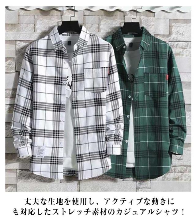 長袖シャツ 秋服 メンズ おしゃれ カジュアルシャツ 長袖 チェック柄 トップス 春夏 秋物 メンズファッション チェックシャツ シャツ トップス ゆったり シャツ 春服 シャツ 伸縮性 メンズシャツ チェック柄シャツ 羽織り 紳士服 薄手 春 秋 M-5XL