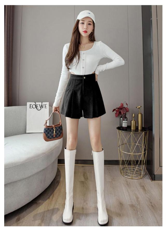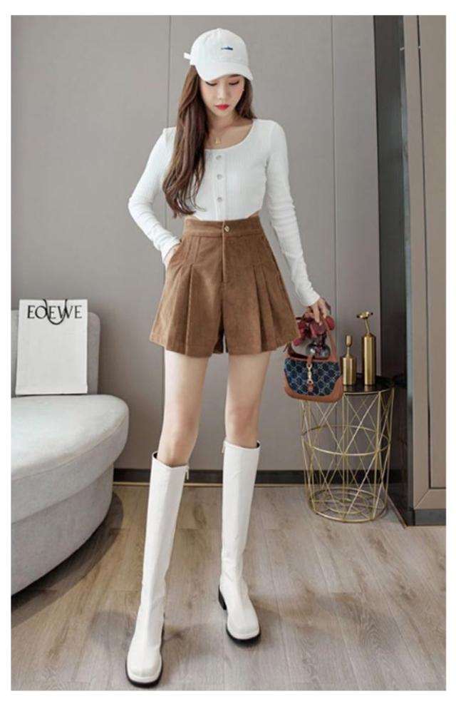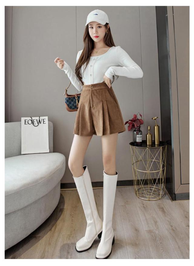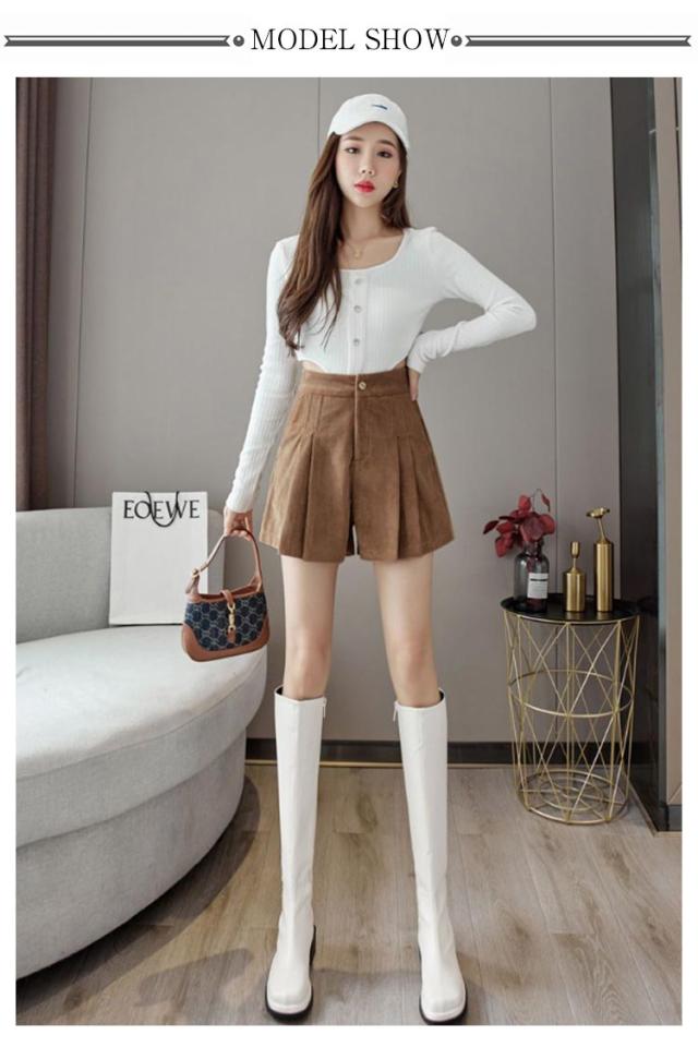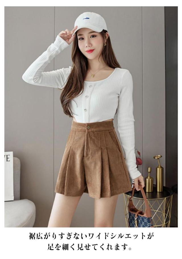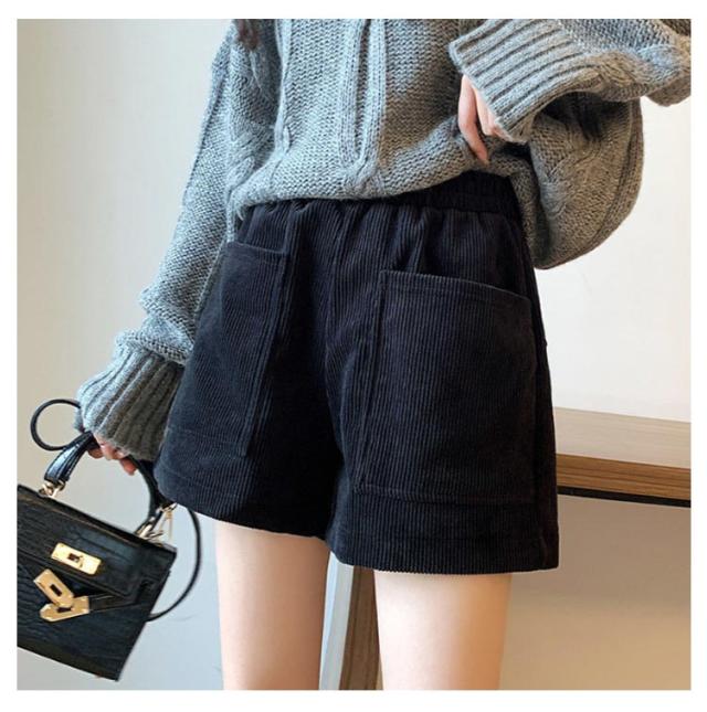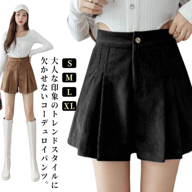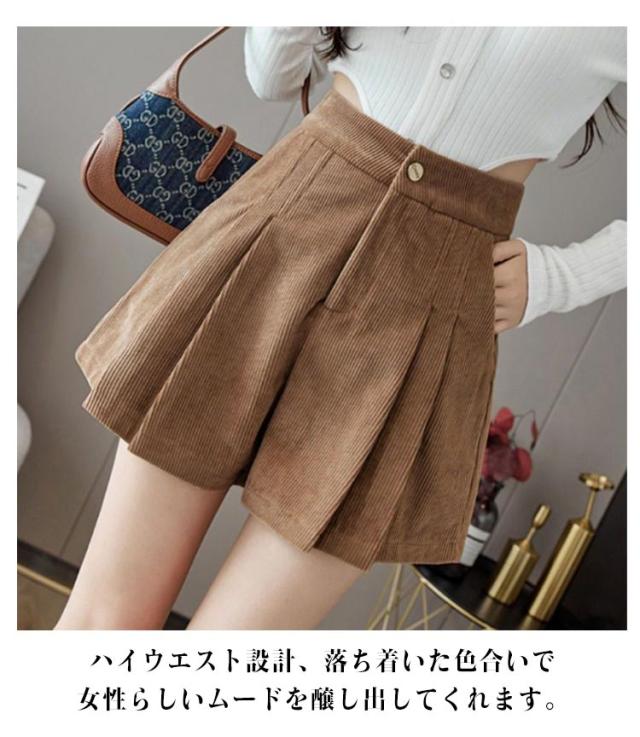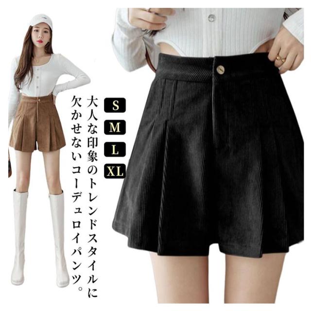 膝上 ハーフパンツ 春 秋冬 コーデュロイ ハイウエスト レディース ショートパンツ ハーフ丈 半ズボン 短パン 重ね着 コーデュロイパンツ ボトムス カジュアルパンツ ショーパン ハイウエスト ショートパンツ シンプル 大人 S M L XL