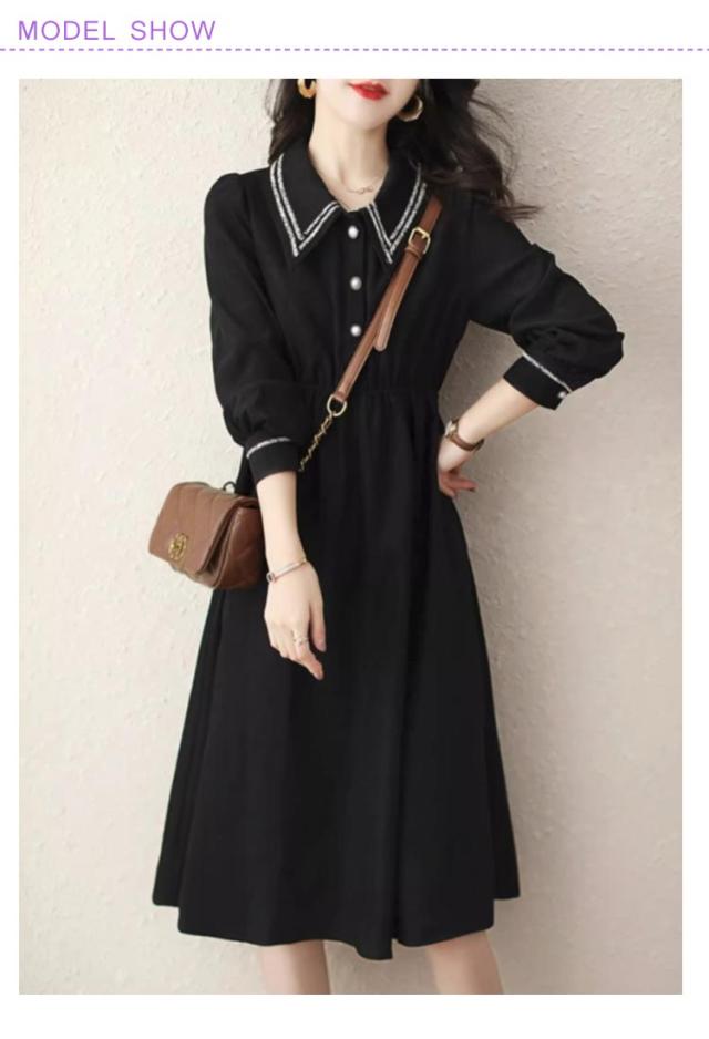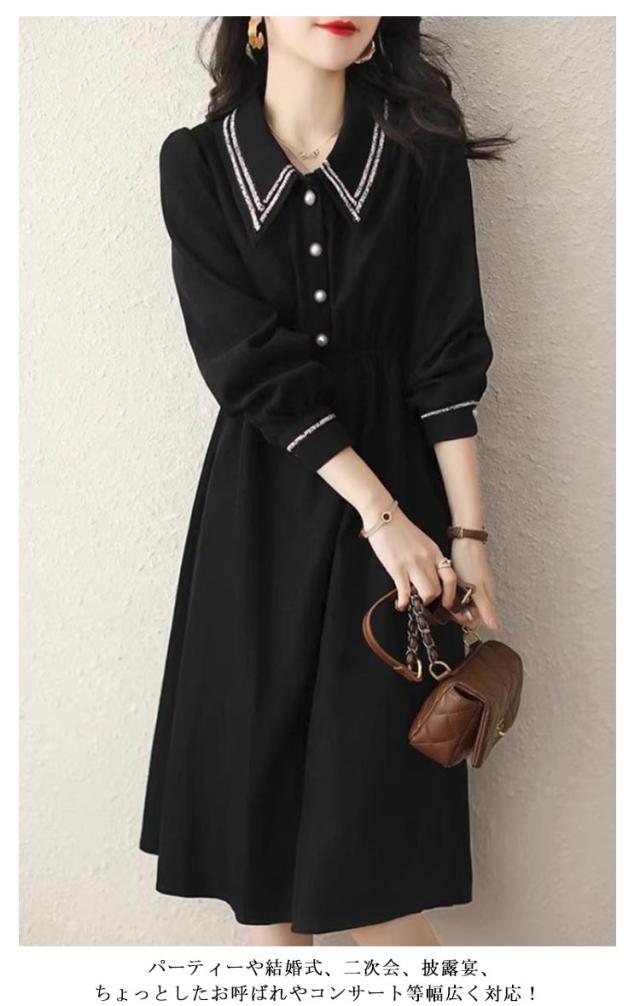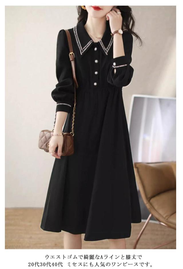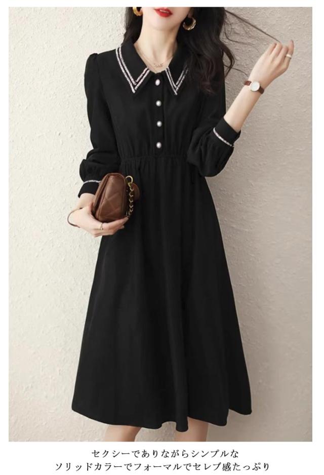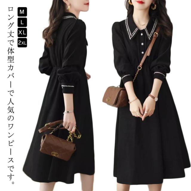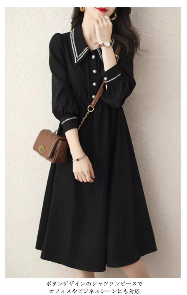 冬 レディース ロングワンピース シャツワンピース 上品 フレア ワンピース 夏 オフィス レディース 40代 秋 ワンピース 春 きれいめ 大人 長袖 フォーマル パーティードレス 30代 ウエストゴム 50代 入学式 入園式 卒業式 卒園式 黒