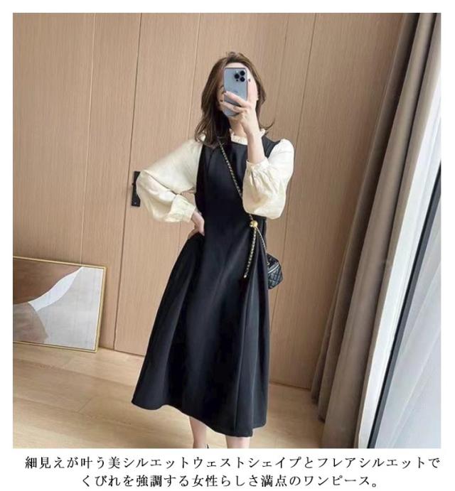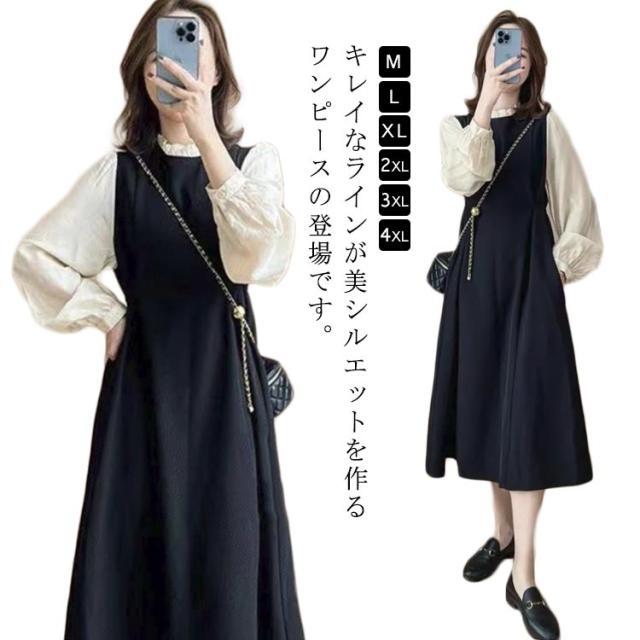 パーティードレス レディース 上品 ひざ丈 ワンピース きれいめ ロング 春 オフィス フォーマル 長袖 大人っぽい Aライン かわいい 着痩せ フォーマル 膝下 フレアー ワンピース 冬服 膝丈 秋服 冬 秋 春服 M L XL 2XL 3XL 4XL