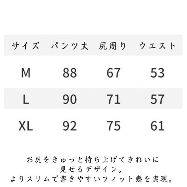 | サイズについての説明 | Mパンツ丈88ウエスト53尻周り67おすすめ体重40-53KG Lパンツ丈90ウエスト57尻周り71おすすめ体重53-65KG XLパンツ丈92ウエスト61尻周り75おすすめ体重65-78KG ※サイズは平置き実寸になります。 サイズ表の実寸法は商品によって1-3cm程度の誤差がある場合がございます |