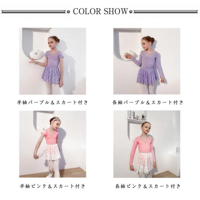 | 選べる長袖&半袖の2タイプ!高級感溢れるキッズレオタード・スカート2点セット レーススカートとの組み合わせで可愛さUP!バレエの発表会に最適。 伸縮性のよい綿素材で、肌触り優しく気持ちよく動けます。 長袖タイプもあり、肌寒い季節や雨の日にぴったり。 股下スナップボタン付きのうれしいデザイン、おトイレが楽になるので人気。 取り外し可能のスカート、シンプルなデザインでレッスンの妨げにならない。 | |