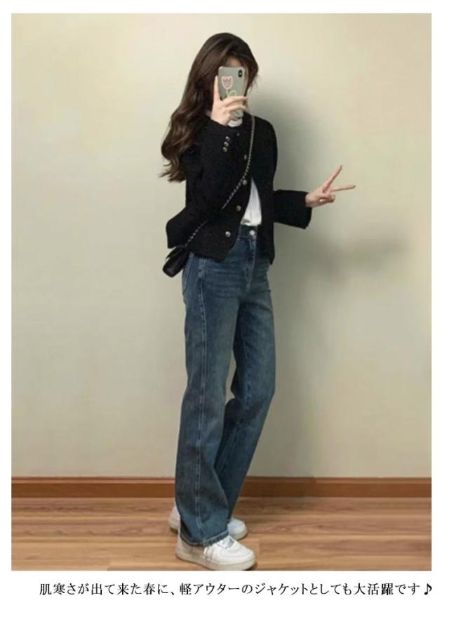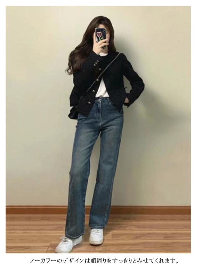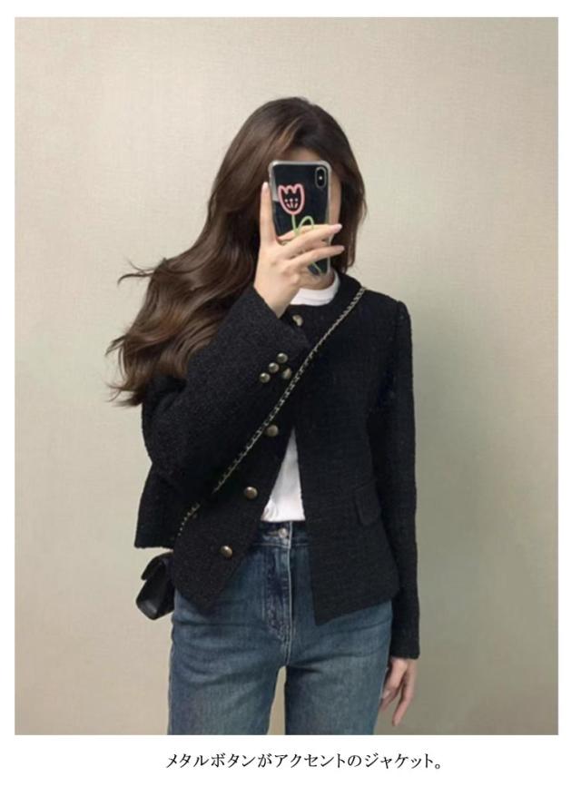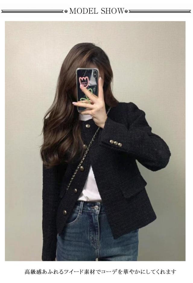レディース ノーカラージャケット ノーカラージャケット 黒 ツイード ノーカラー ジャケット ブルゾン ツイードジャケット アウター ショート丈 秋 長袖 フォーマル セレモニー 卒業式 大人 カジュアル オフィス 通勤