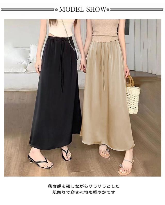 体型カバー ウエストゴム フェミニン フレア ロングスカート スカート ロング 夏 スカート 光沢感 サテン レディース タイト スカート マーメイド キラキラ Aライン 着痩せ おしゃれ ゆったり カジュアル 春 秋 サテン 春物 着痩せ オフィス