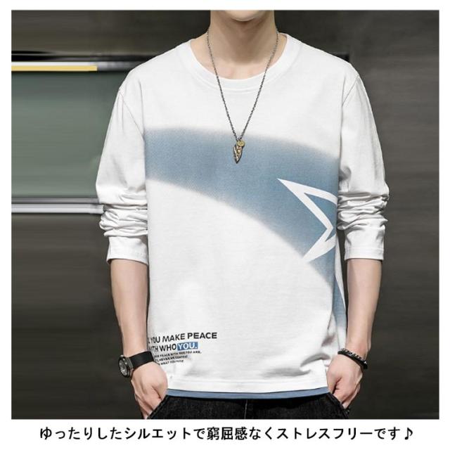 | M-3XL!春秋にピッタリの長袖Tシャツです トップスとしてもインナーとしても大活躍するアイテムです。 肌に優しい生地を使用することで通気性が良く、着心地は抜群です。 ゆったりしたシルエットで窮屈感なくストレスフリーです♪ これからの季節に1枚有ると便利です。 | |