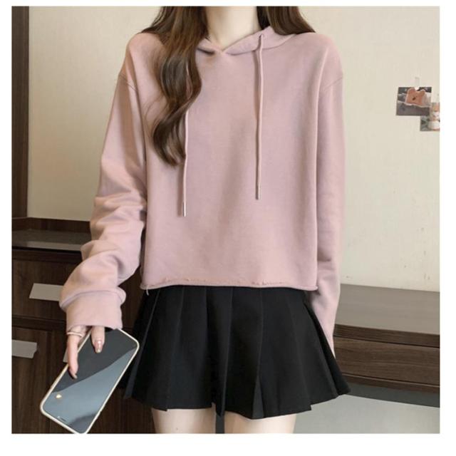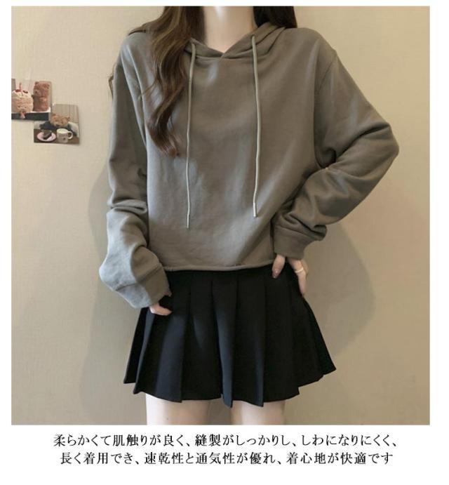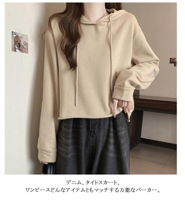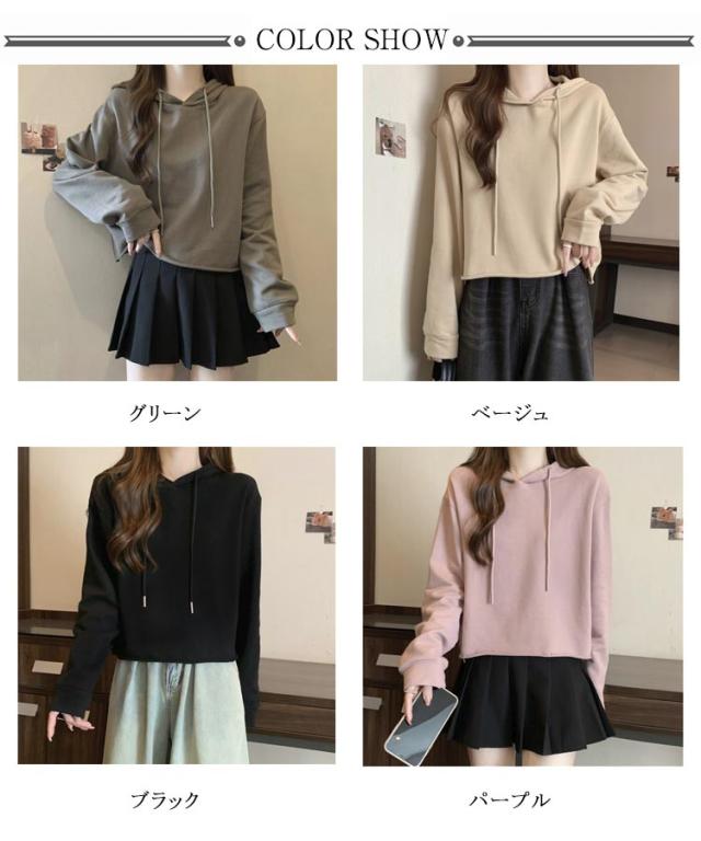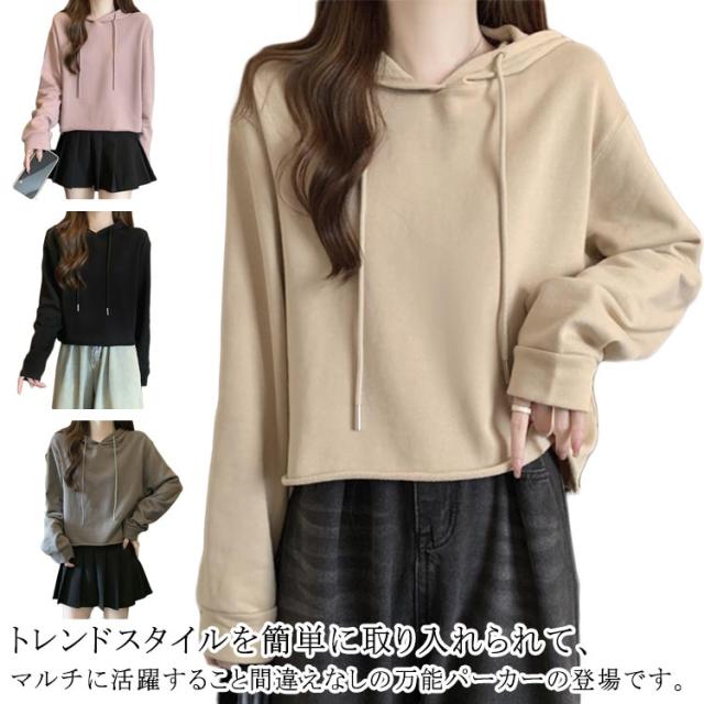 パーカー フード付き レディース 袖 トレーナー 薄手 無地 プルオーバー ショート丈 インナー パーカー 春夏秋 ルームウエア トップス 着まわし力 シンプル おしゃれ
