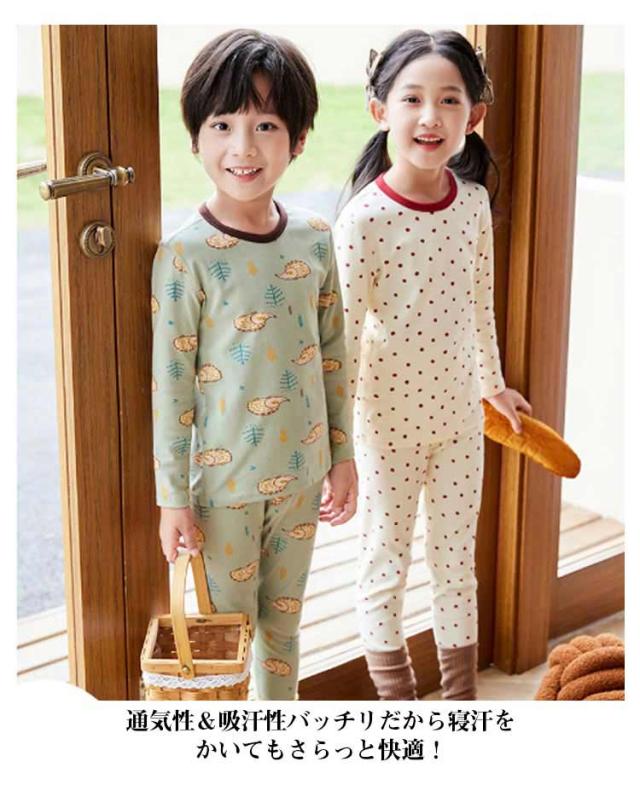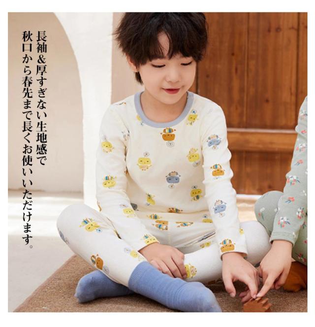 | やわらかいコットン素材でお子様の肌にも安心です。 通気性&吸汗性バッチリだから寝汗をかいてもさらっと快適! 長袖&厚すぎない生地感で秋口から春先まで長くお使いいただけます。 丈夫な縫製でダメージを受けやすい首元も安心。 ウエストは総ゴムだからストレスフリー! | |