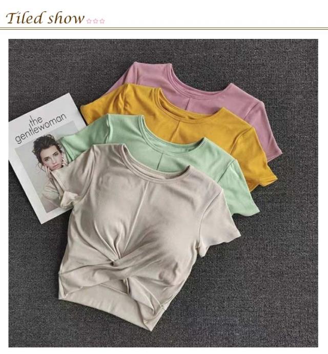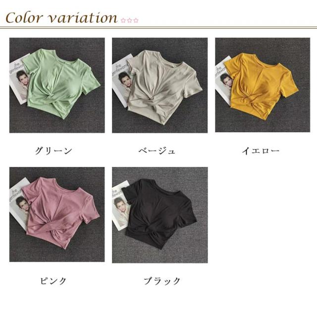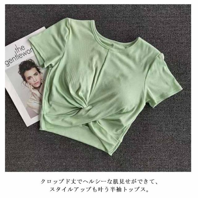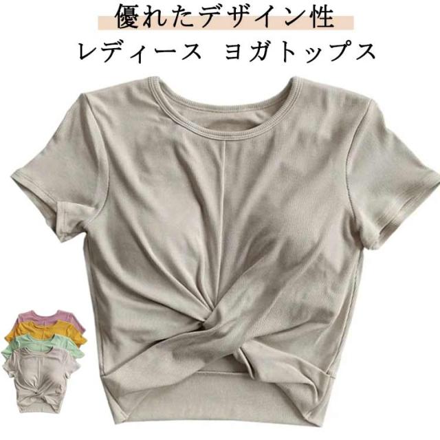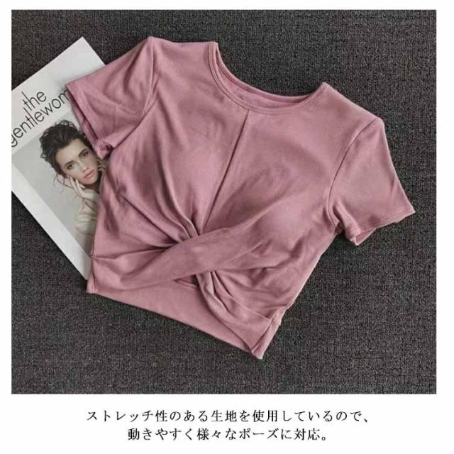 ヨガウェア レディース 半袖 トップス 薄手 クロップド丈 セットインスリーブ シンプル 無地 おしゃれ かわいい 韓国 へそ出し ウエスト 細見え クロスデザイン スポーツ フィットネス ホットヨガ ピラティス ストレッチ ダンス エアロビクス 運動着 吸水 速乾