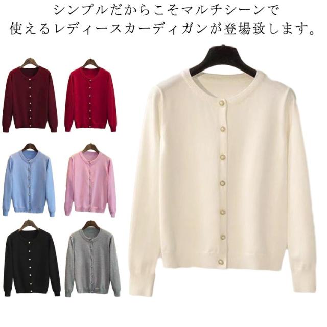 カットソー ニットカーディガン トップス リブ袖 パールボタン セーター ニットカーディガン 長袖 レディース 秋 ニット 冬 薄手 レディースニット 無地 オフィス 通勤 ニットカーディガン ソフト シンプル 洗える ニット ストレッチ