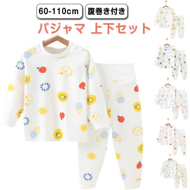 ルームウェア ベビー 上下セット 腹巻付き 長袖 80 キッズ 2点 ベビーパジャマ 長ズボン 90 綿100% ベビー パジャマ パジャマ 寝具 ベビー服 パジャマ ベビーパジャマ セットアップ ベビールームウェア 室内着 お昼寝 総柄 秋 上下