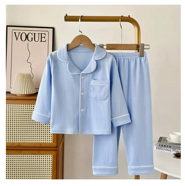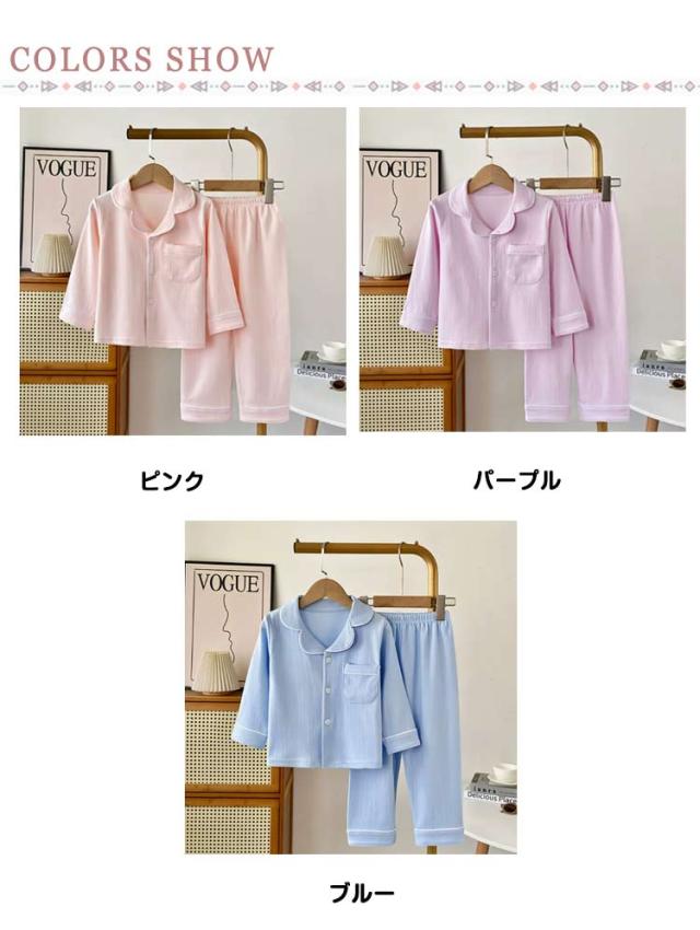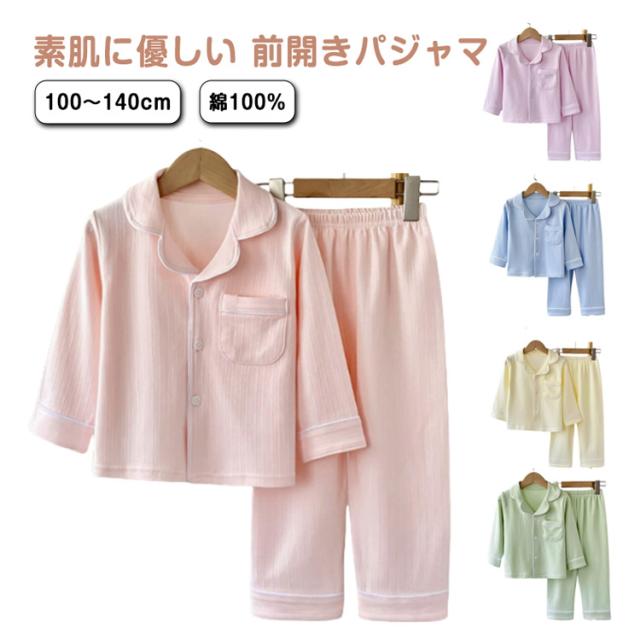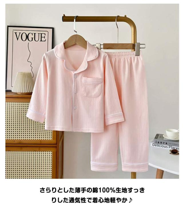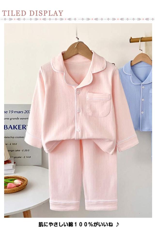 ブルー ルームウェア 男の子 ボーイズ パジャマ 長袖 春 夏 キッズ テーラー襟 上下セット パジャマ 100 綿100% 秋 ベージュ 前開き 110 120 130 140cm 子供 ジュニア ガールズ 薄手 女の子 かわいい おそろい