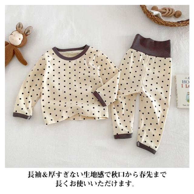 | やわらかいコットン素材でお子様の肌にも安心です。 通気性&吸汗性バッチリだから寝汗をかいてもさらっと快適! 腹巻付きなので子供の風邪予防にもなる。 パンツ裾がリブ設計だからめくれ上がってくる心配なし! 長袖&厚すぎない生地感で秋口から春先まで長くお使いいただけます。 丈夫な縫製でダメージを受けやすい首元も安心。 ウエストは総ゴムだからストレスフリー! | |