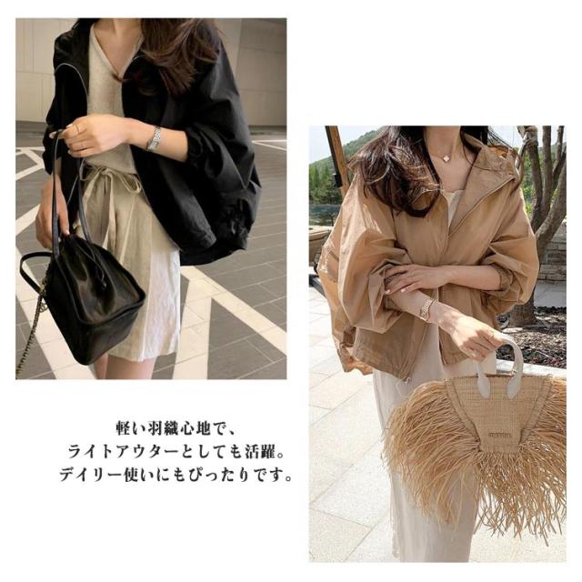 ブルゾン 春 ジップアップ ジャケット フード付き パーカー ライトアウター 長袖 ショート丈 コート 羽織り アウター ブルゾン おしゃれ 軽い 軽量 薄手 紫外線対策 大きいサイズ カジュアル 大人 無地 ゆったり UVカット 春 夏 春服