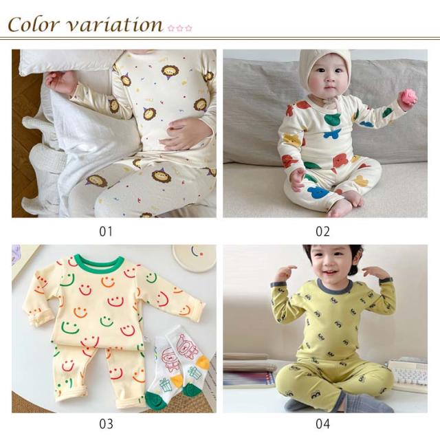 | 部屋着、肌着として使える 柔らかな着心地 ボトムはゴム仕様 春秋冬に掛けて着られる 子供が好きな柄いっぱい 動きやすく、お腹部分はぴったり目で冷え防止! ウエストインして着てもかさばらない 冬のインナーとしてもおすすめ 耐久性にも優れ、形崩れしにくく長く着られる! | |