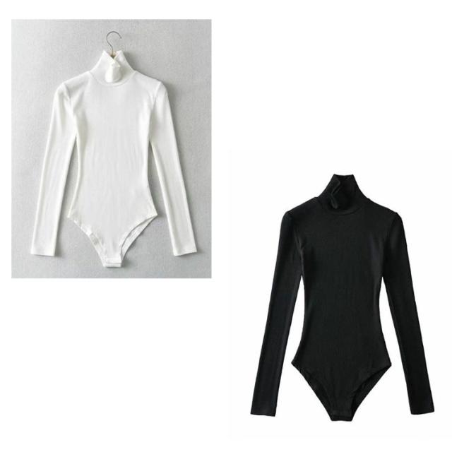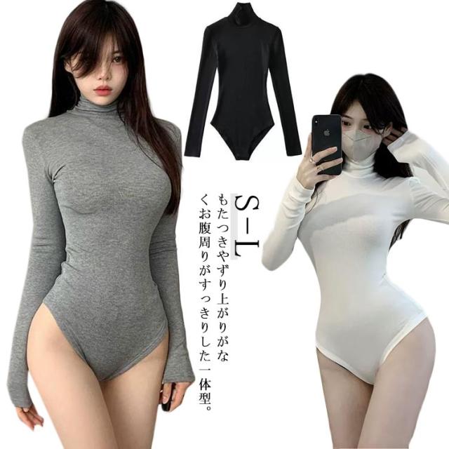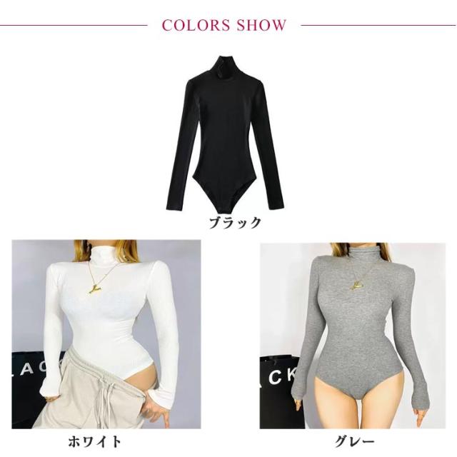 カットソー レディース インナー つなぎ 肌着 トップス 長袖 シンプル ボディシャツ ストレッチ セクシー レオタード 大人 ハイネック 無地 スリム ツナギ 白 黒 レッド ホワイト ブラック