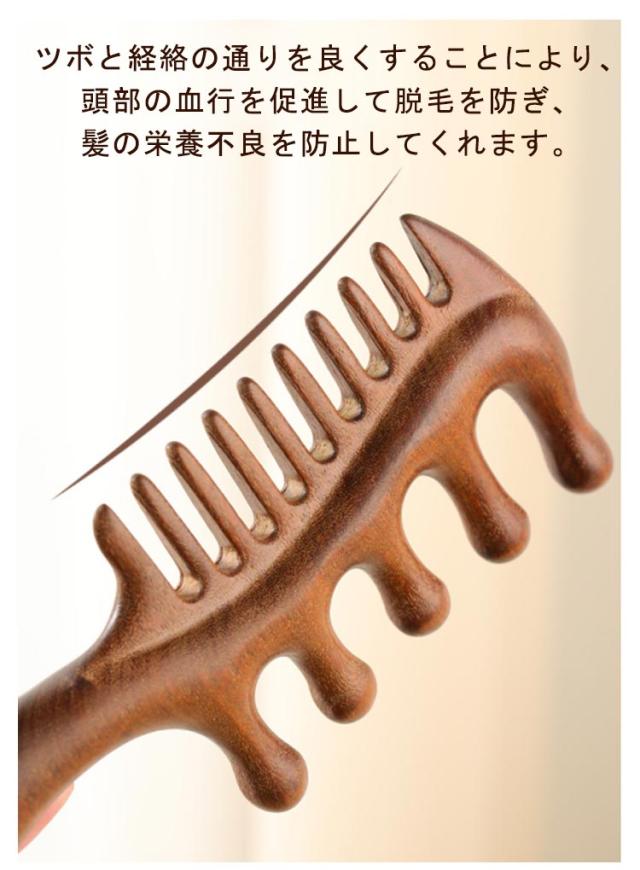 ヘアブラシ 頭皮マッサージ マッサージコーム ヘッドマッサージ ヘアコーム 櫛 ツボ押し ヘアケア 檀木 頭皮ケア 櫛 カッサ棒 くし カッサ 天然木 コーム 頭皮 顔 首 経絡マッサージ 血行 男女兼用