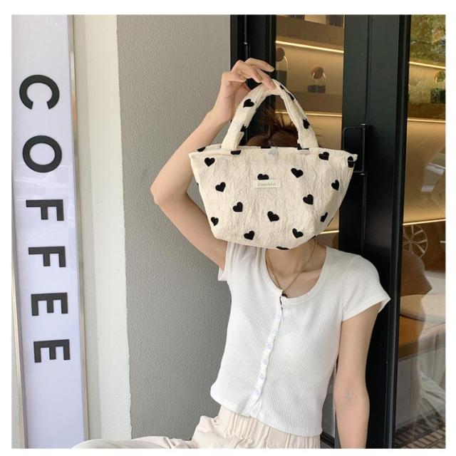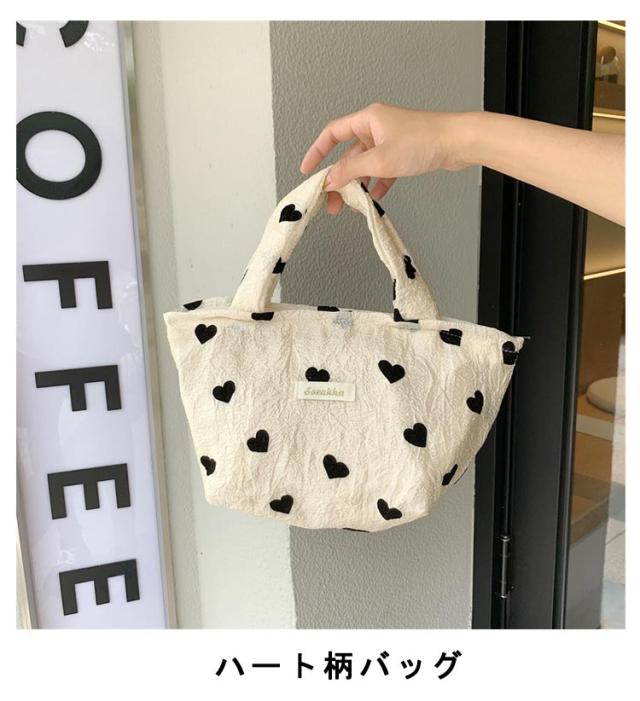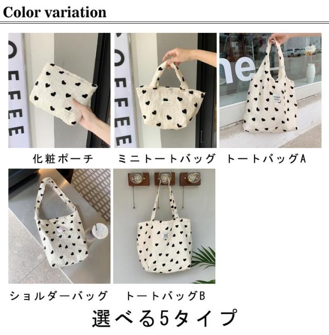 手提げバッグ トートバッグ 化粧ポーチ ハート柄バッグ サブバッグ キャンバス 選べる5タイプ ミニバッグ ハート柄 折りたたみバッグ 軽量 ショルダーバッグ シンプル 可愛い 韓国 おしゃれ 肩掛け トート 鞄 ガーリー カジュアル 旅行