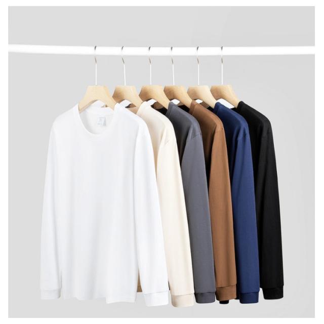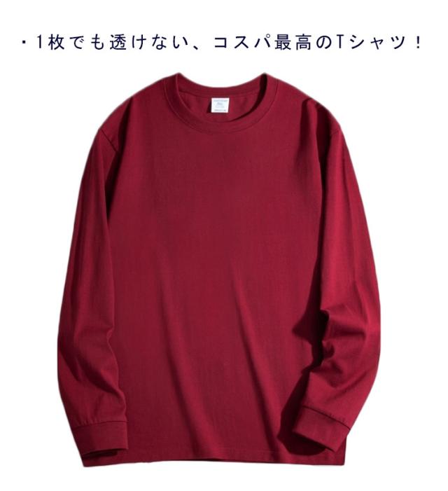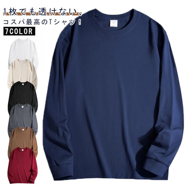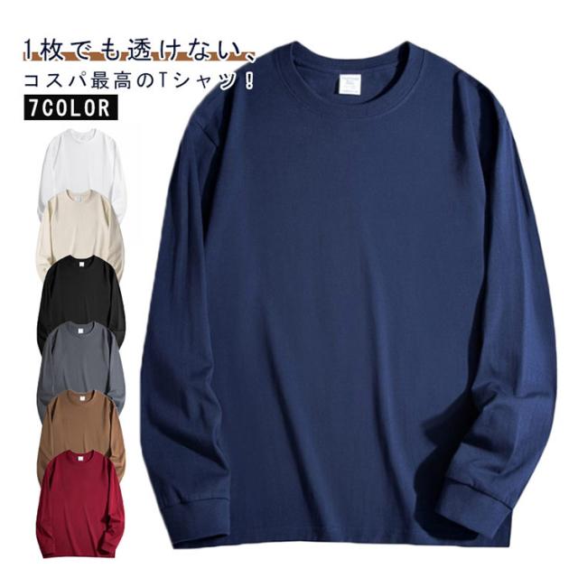 大きいサイズ 透けない 長袖 厚手 丸首 無地 オシャレ 男性 丈夫 メンズ 綿 コットン Tシャツ 袖リブ インナー トップス カットソー 白tシャツ 厚手tシャツ 分厚い