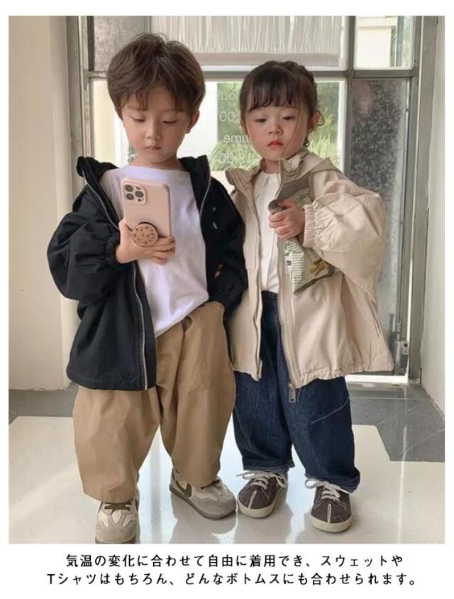 ブルゾン パーカー フード付き ウインドブレーカー キッズ コート 90-140cm ジャケット マウンテンパーカー 長袖 無地 90-140cm 防風 男の子 女の子 撥水 ジャンパー 薄手 軽量 子供服 春アウター キャンプ 修学旅行 登山 アウトドア