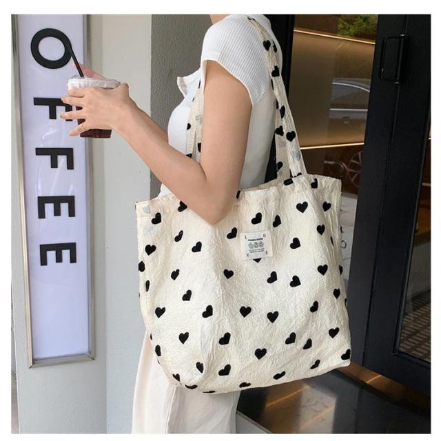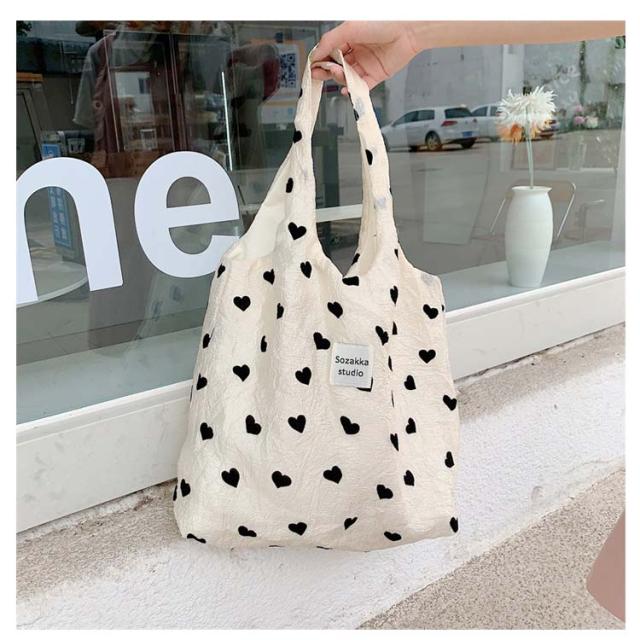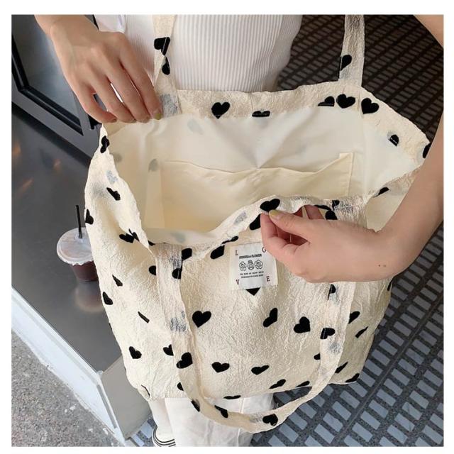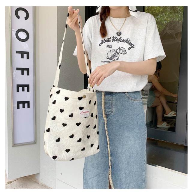 ショルダーバッグ 選べる5タイプ ハート柄バッグ ミニバッグ サブバッグ トートバッグ ハート柄 ハート柄バッグ おしゃれ キャンバス 軽量 折りたたみバッグ シンプル 可愛い 韓国 化粧ポーチ 肩掛け トート 鞄 ガーリー カジュアル 旅行