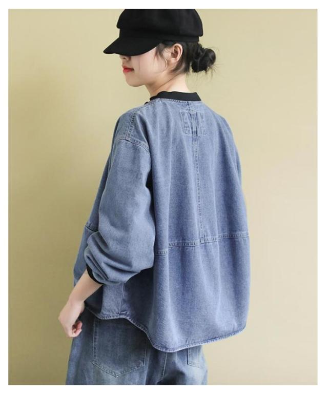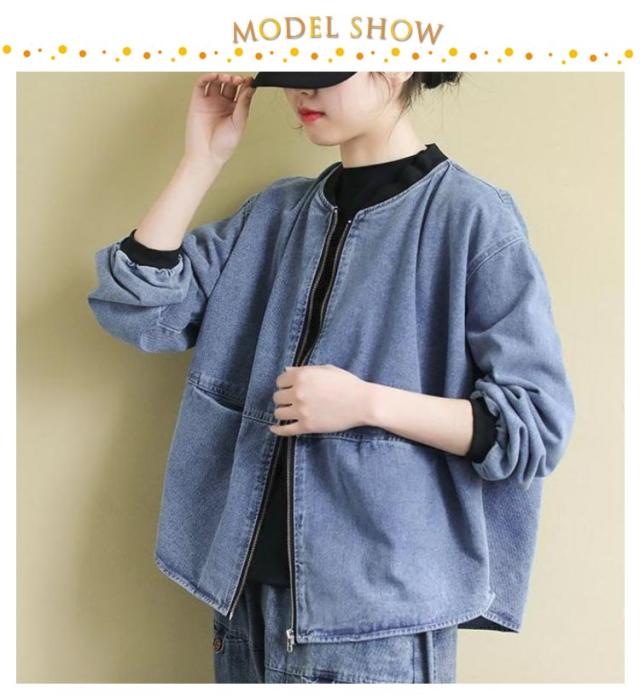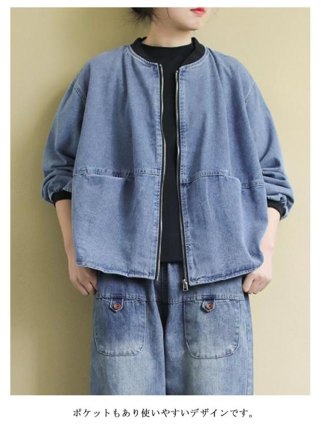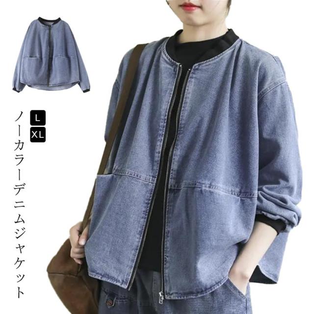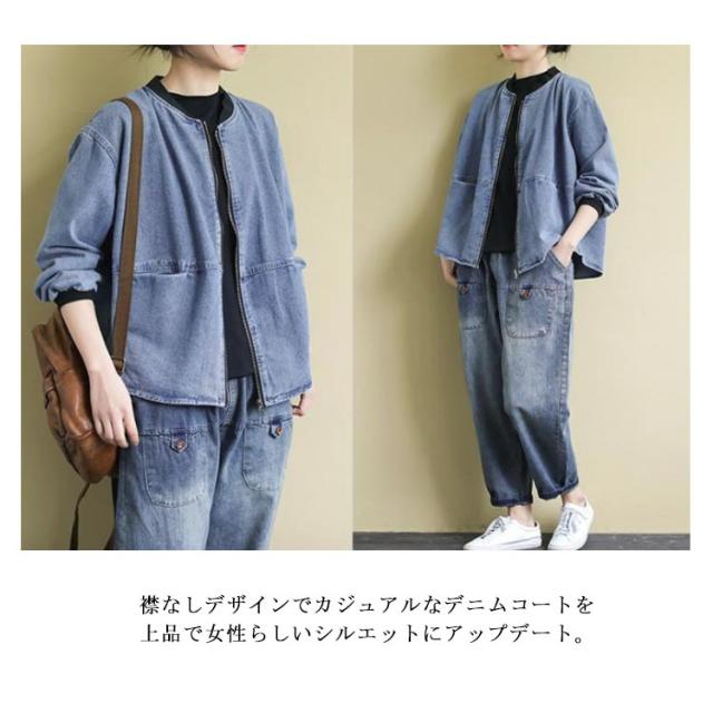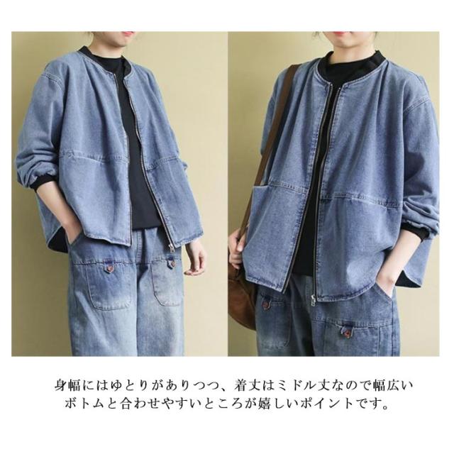 デニムジャケット アウター ノーカラー レディース ジップアップ デニムジャケット 長袖 ジーンズ ライトアウター 羽織 体型カバー ゆったり トップス 春 秋 春アウター